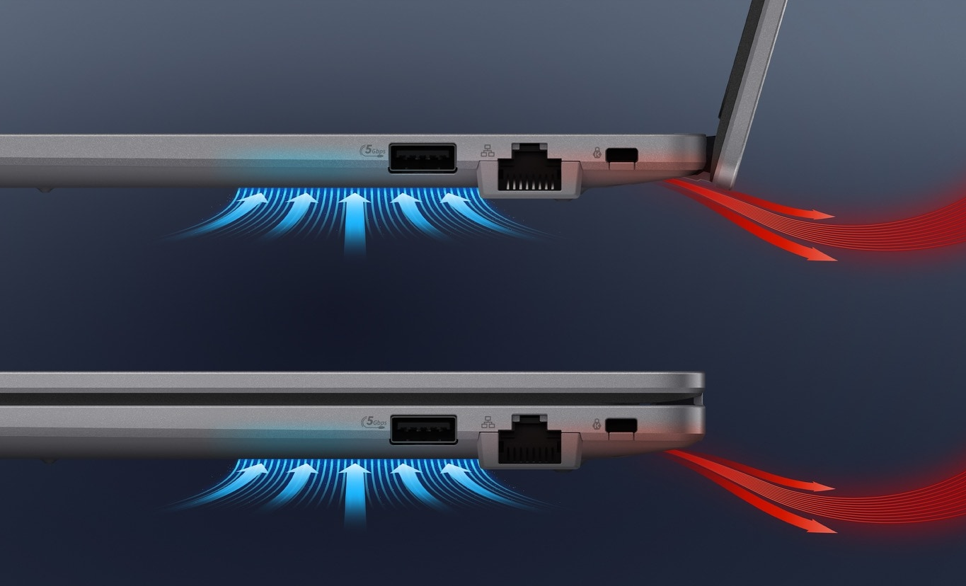 ASUS ExpertBook P1 also features an enhanced cooling system that ensures consistent, optimal performance whether the lid is open or closed, guaranteeing peak efficiency even during extended use. Moreover, with this ExpertCool design, the heat is directed to the rear of the device, preventing hot air from affecting your hand when using a mouse.