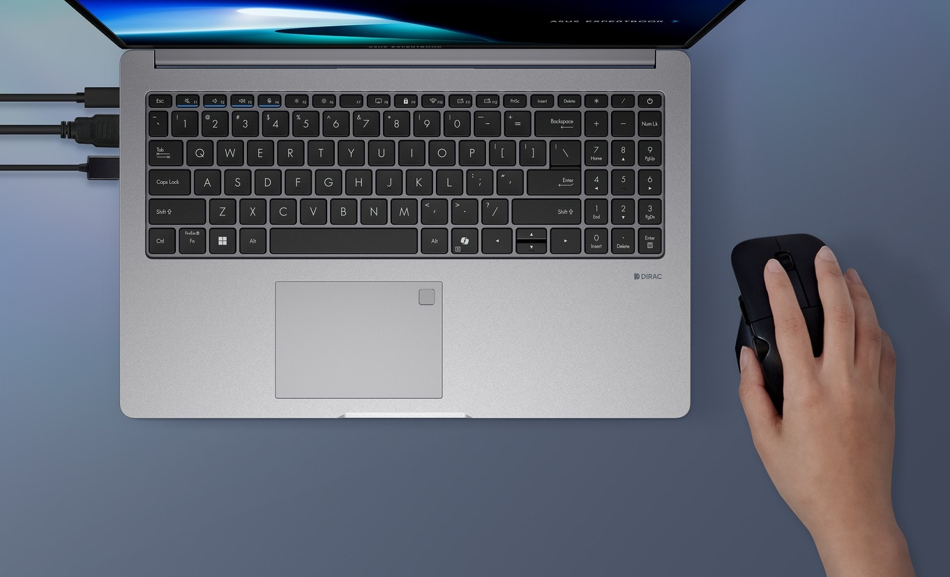 ASUS ExpertBook P1 is crafted to provide an exceptional user experience. Its I/O ports are strategically placed to ensure an uncluttered workspace, allowing free movement of the mouse without interference from cords. The right side of the device is kept clear to facilitate smooth mouse usage.
