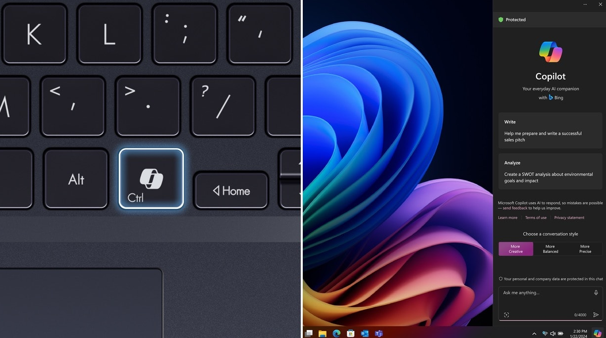 AI-powered Copilot in Windows5 with commercial data protection is your assistant at work. Supercharge your productivity and achieve more with less time and effort using Microsoft Copilot. Experience your everyday AI companion now with the dedicated Copilot key. Just one click for endless exploration.