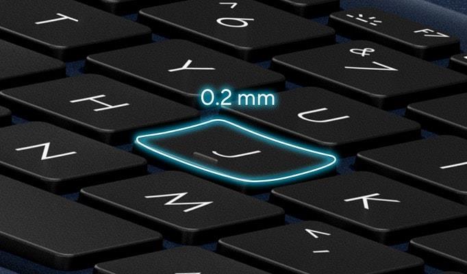 The 0.2 mm key-cap dish is designed to match the shape of your fingertips so your fingers are gently guided to the ideal contact point with the keys.