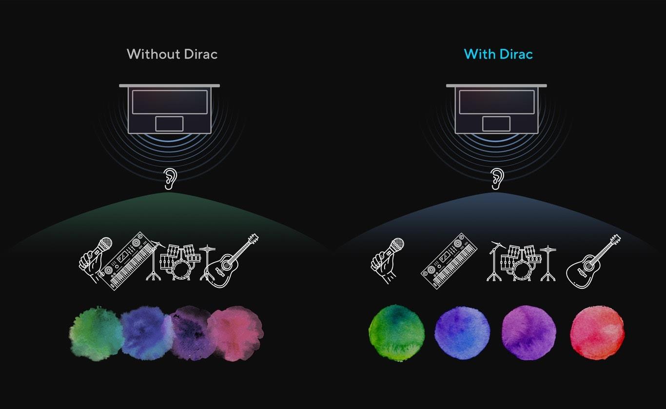 Designed with help from the audio experts at Dirac, a professional audio solution provider, the audio system delivers the most immersive, clear, and balanced sound experience you've ever heard on a PC, laptop or tablet. You'll hear a wider and deeper soundscape than you could imagine, unleashing the full audio potential of your laptop.