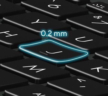 The 0.2 mm key-cap dish is designed to match the shape of your fingertips so your fingers are gently guided to the ideal contact point with the keys.