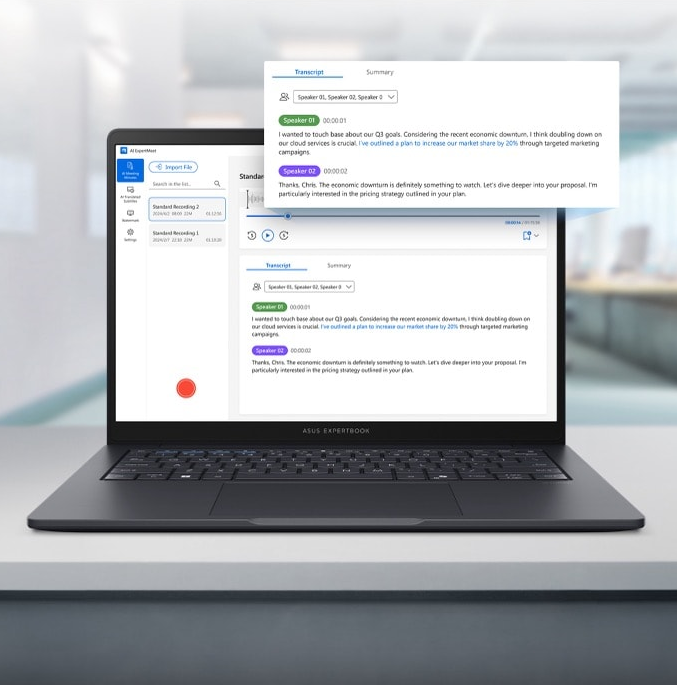 ASUS AI ExpertMeet1 is designed to bring you and your business partners closer by eliminating barriers to international conference calls. It offers seamless communication with AI translation and speaker ID functionality to help identify each speaker's key discussion points. In addition, AI Meeting Minutes also assist in extracting the key points from your meetings.