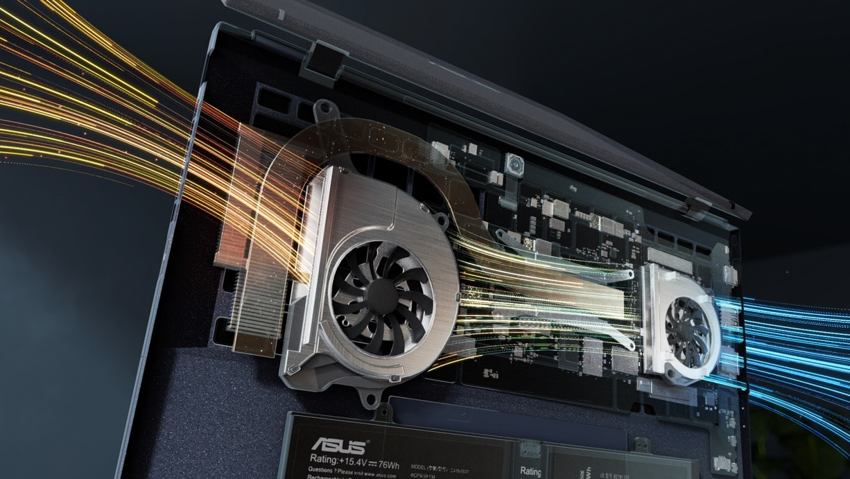 ExpertBook B9 OLED has a pair of smart-cooling fans for smooth productivity, and with a choice of modes. Pick Whisper mode for silent performance, Standard for balanced productivity, or Performance for demanding tasks - ready for whatever your work day throws at you.