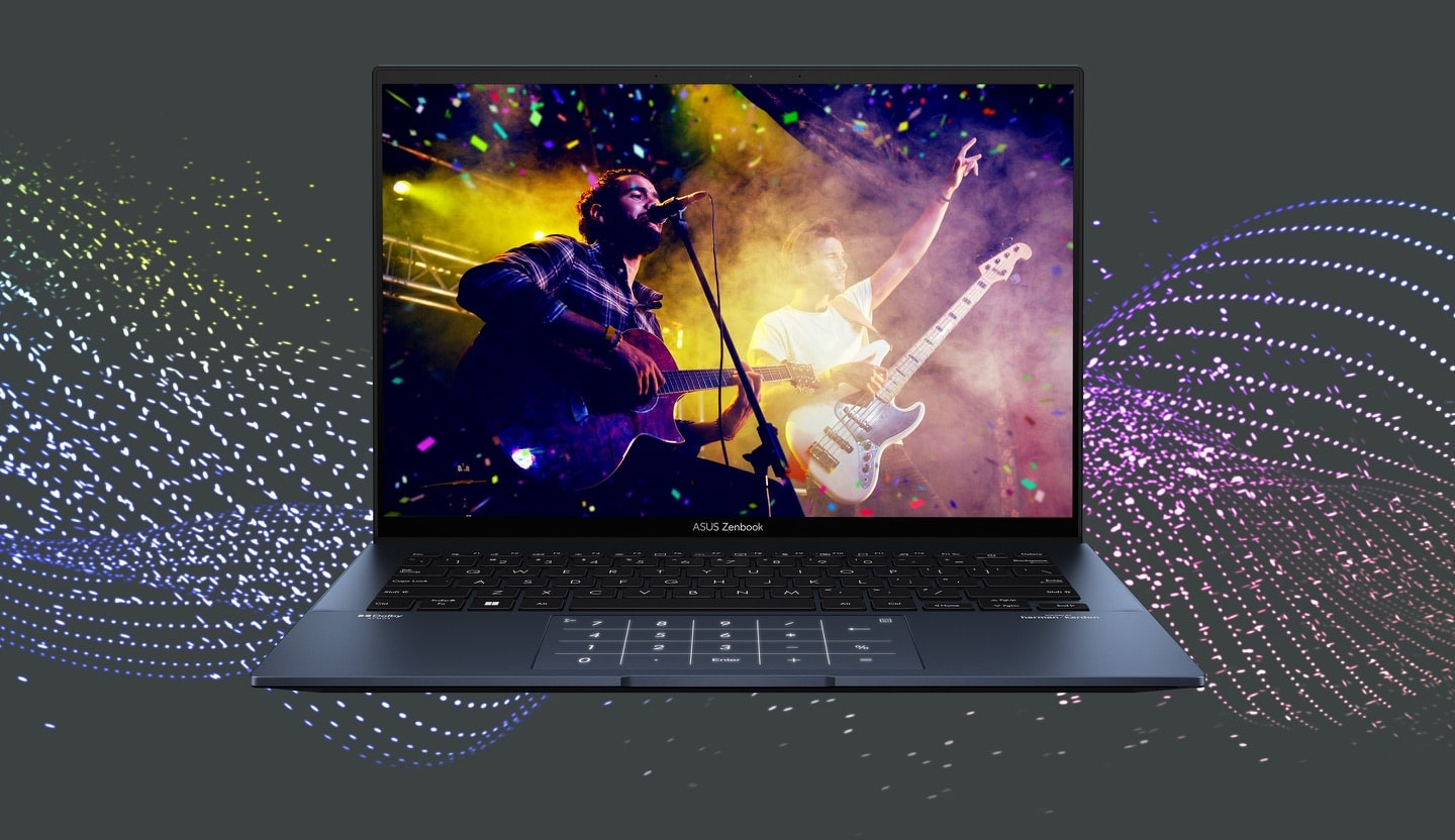 For unrivaled audio quality, Zenbook 14 OLED has a Dolby Atmos stereo sound system that's certified by the audio experts at Harman Kardon. It delivers powerful, immersive sound that's crystal-clear, with the multi-dimensional soundscape of Dolby Atmos. It immerses you in your favorite entertainment with sound that moves all around you with breathtaking realism in music, movies and TV.