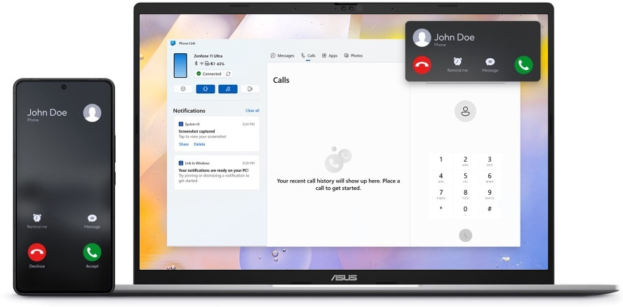 Experience an effortless life with seamless transitions across your laptop and phone for calls, texts, and file access via Microsoft Phone Link. This technology enhances cross-platform collaboration, integrating all your devices and peripherals into one unified system.