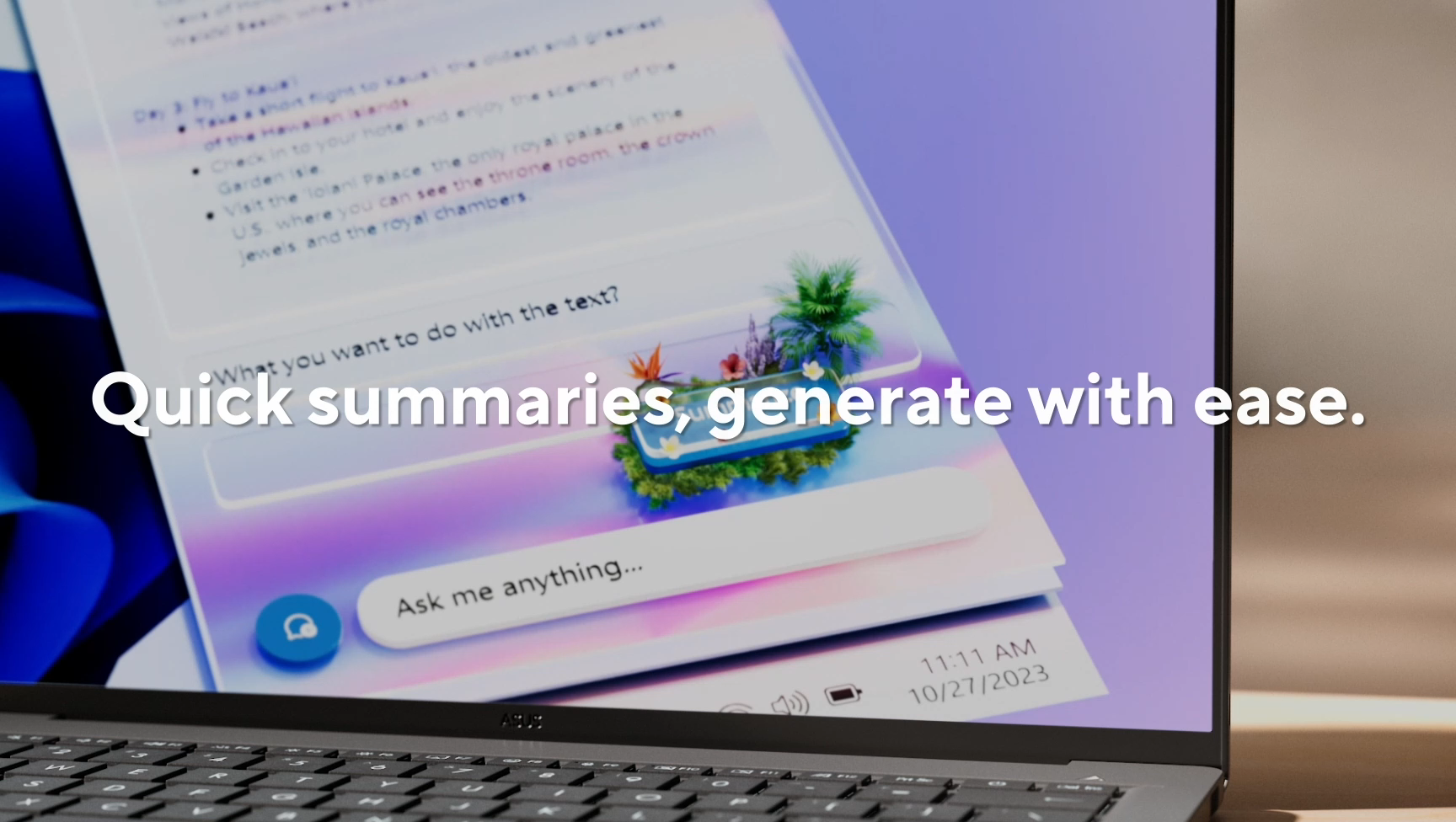 Copilot empowers you with AI-driven search, quick summaries, and smart task management - so you can spark ideas, streamline your schedule, and stay focused on what matters most.