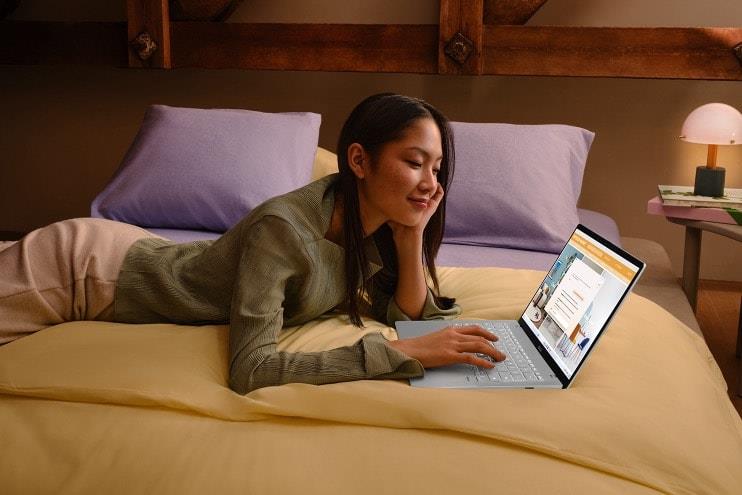 ASUS Vivobook S16 features a stunning 16:10 WUXGA OLED display, offering deep blacks, vibrant colors, and smooth motion for a stunning visual experience. Its wider screen enhances productivity, while the vibrant visuals ensure an immersive experience for work, study, and play.