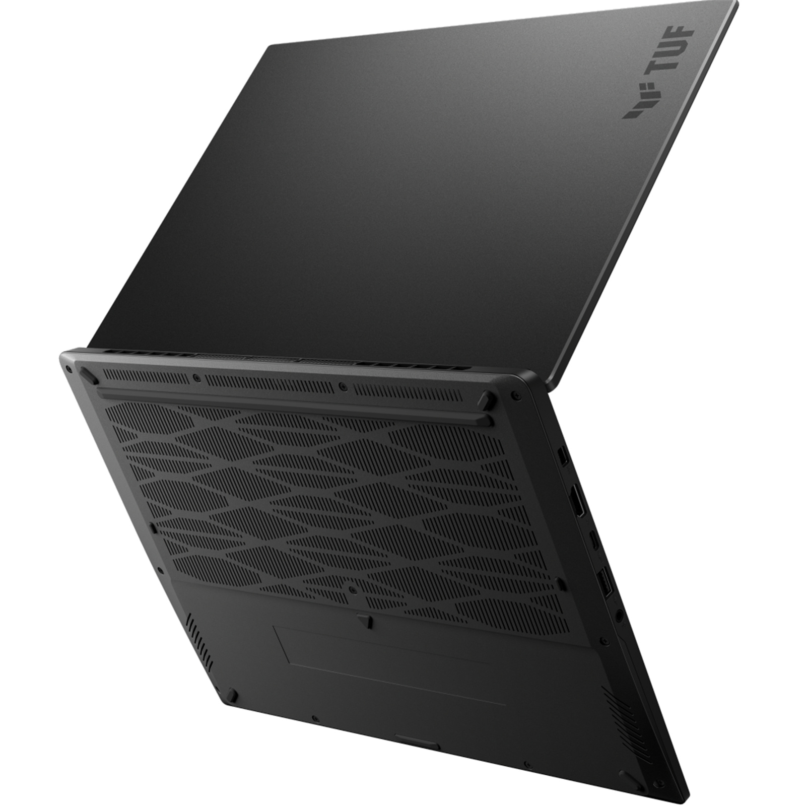 Geometric diamond-shaped cutouts in ultra-thin aluminum underside of the TUF Gaming A14 give a bit of design flair and extra durability, not to mention ample room for air intake.