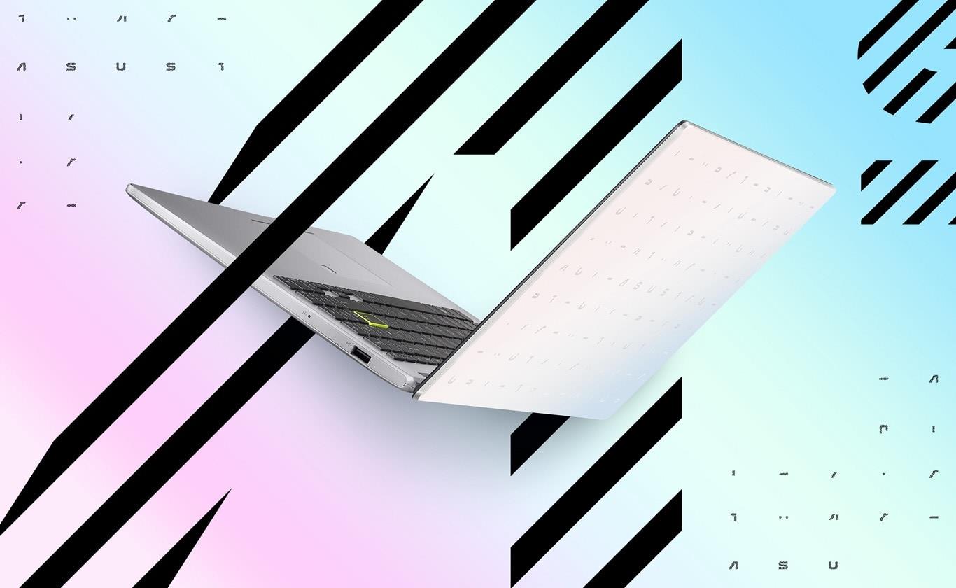 Vivobook Go 15 has a youthful vibe that sets it apart. The lid is detailed with modern slashes that are accompanied by a unique motif made up of a deconstructed ASUS badge. The bold look continues inside, where a bright yellow Enter key takes center stage. It's something never seen before in laptop design.