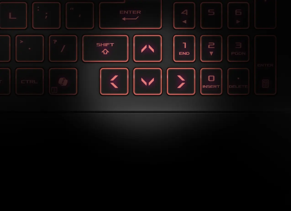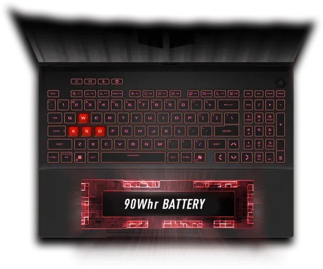 Arm yourself with a desktop-style keyboard optimized for gaming. One Zone RGB backlighting lets you brilliantly express your own unique style. Overstroke technology triggers higher in each keystroke for faster responsiveness and effortless control. In true TUF form, each key is durable enough to withstand over 20 million presses for superb long-term reliability and precision. The touchpad also has a report rate of 240Hz, giving the system more information on what you're scrolling for and reducing accidental misclicks.