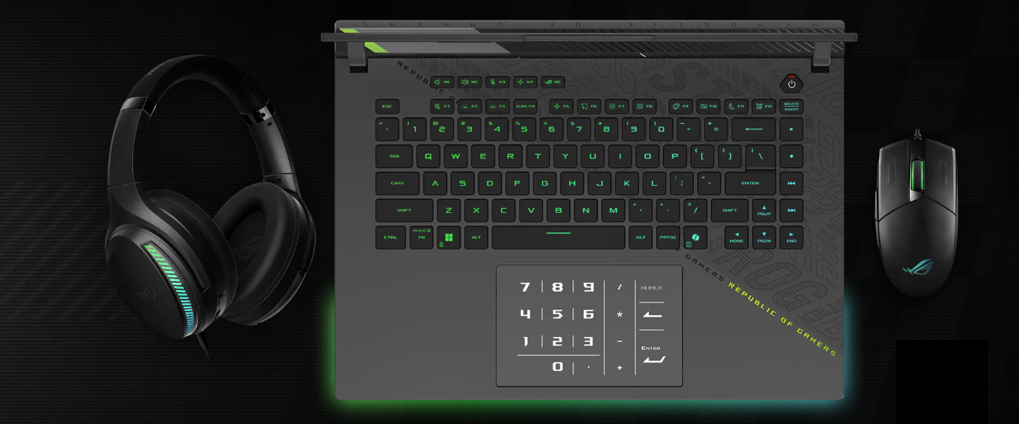 Improve everyday comfort and usability with a glass coating for a more premium feel. More space means greater precision along with more comfortable hand movements and gestures while you're navigating. Despite still being a 15-inch chassis, the Strix G16 also includes a touchpad-based NumberPad, giving you even more options when using your device.