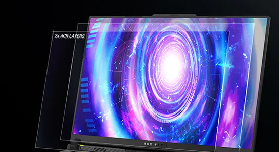 Thoughtful details set this laptop apart from the competition. Our 360° design philosophy puts subtle but distinctive elements across every part of the machine. The dot matrix pattern splashed across the lid cuts down to meet cross-hatched vents beneath the base. An expansive rubberized grip holds the laptop firmly in place and makes it easier to carry. Typographic elements around the trim subtly show off your ROG pride.