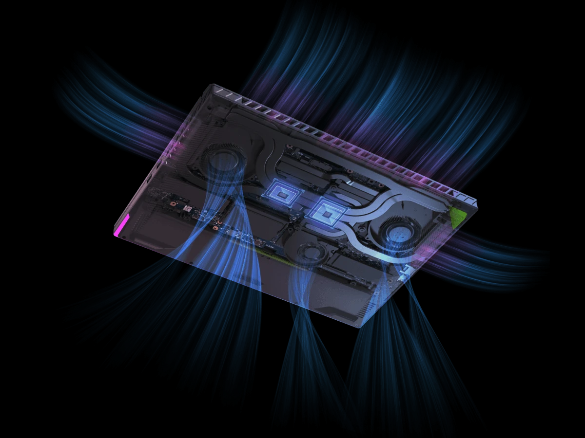 Finally, most gaming laptops have a dual fan cooling system, but the G16 was able to push the performance envelope even further with the a third fan that helps keep the GPU and VRAM cool. Paired with seven high-efficiency heatpipes and Conductonaut Extreme liquid metal on GPU*, the G16's cooling system is a marvel of engineering.