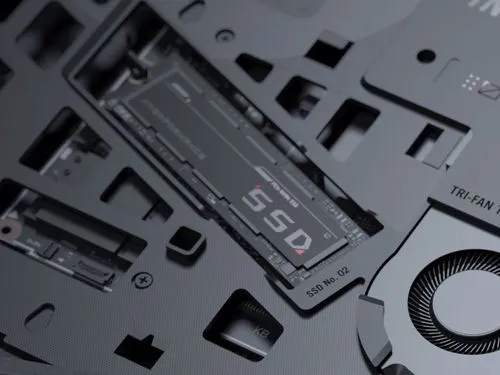 We've completely redesigned the 2025 Strix G18 to make upgrades easier than ever. This tool-less design allows for simple access to both the RAM, SSD, and fans, and we've also brought our latest Q-latch system here for those SSD slots. Like an experienced pit crew, you can remove and replace your SSD and RAM in seconds, having the machine back up and running without missing a lap. A specially designed frame covers the rest of the mainboard to protect the other components, but can easily be removed with a few screws for users who want to tinker further.