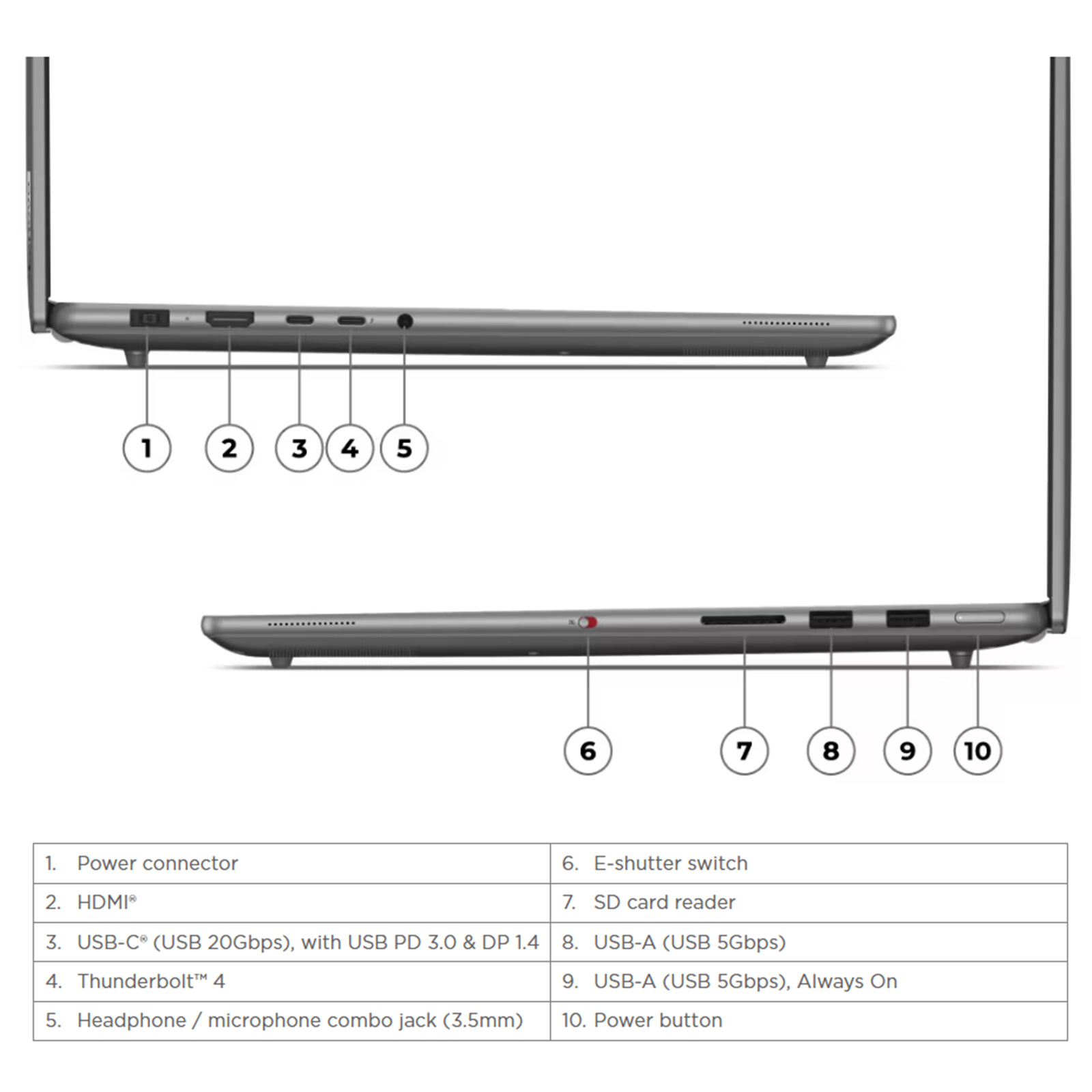 The Yoga Pro 9i Gen 9 16" laptop houses the studio of your dreams. Its sleek body boasts a comfort-edged design that supports your hand's natural curves. You can make a statement with your choice of colours, an elegant Lunar Grey or a nature-inspired Tidal Teal. It also packs the connectivity you need to reimagine your workspace: Expand your storage with the SD card reader, connect to displays via HDMI, or transfer photos and videos with Intel® Thunderbolt™ 4.0. And never run out of juice with a high-capacity battery that charges up in a flash with Rapid Charge Express.