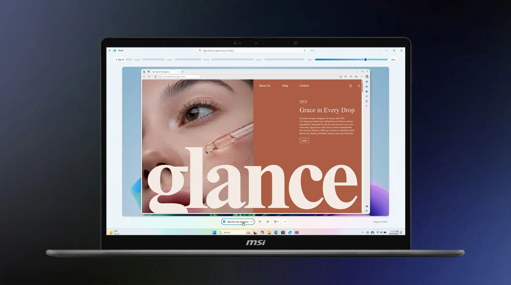 *Available starting early 2025 in most markets; rolling out to the European Economic Area later this year. Optimized for select languages (English, Chinese (Simplified), French, German, Japanese, and Spanish). Content-based and storage limitations apply. Requires Windows Hello Enhanced Sign-in Security. Seeaka.ms/copilotpluspc.