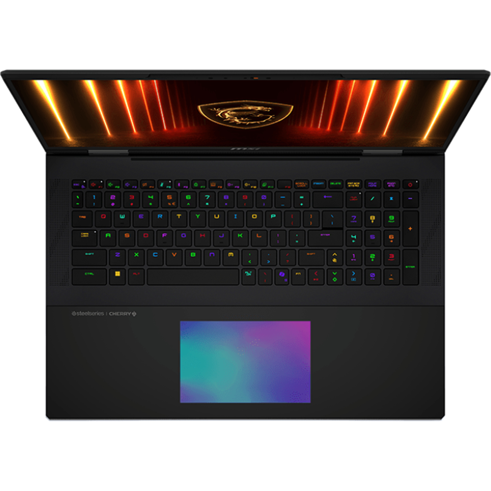 Enjoy tactile feedback. The Titan 18 HX AI comes with a unique Cherry MX Ultra-Low Profile mechanical keyboard tailored for laptops with ultra-slim designs. The keyboard features a two-piece keycap structure and gold cross-point contact system that create a satisfying tactile feel, and precise key switch actuation.
