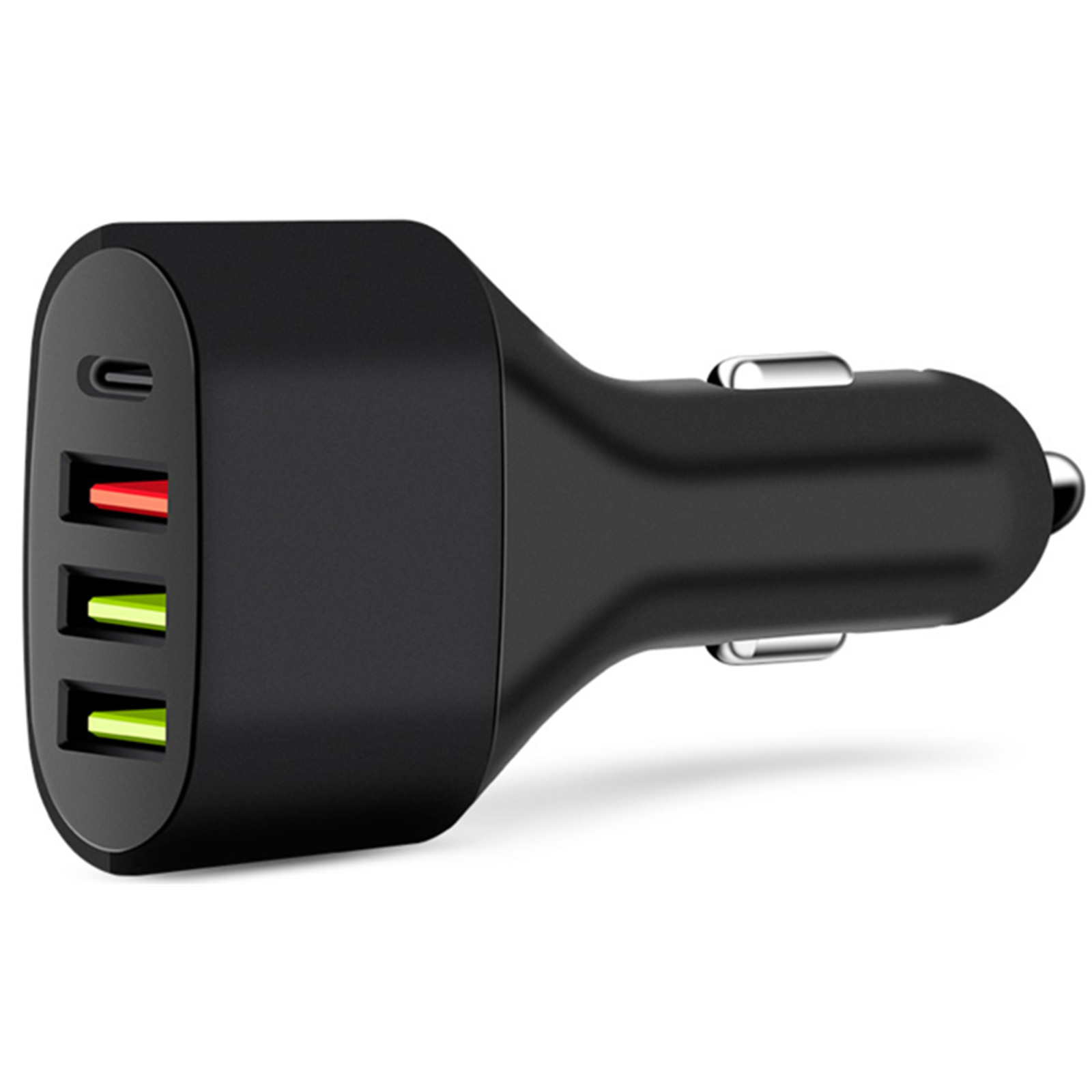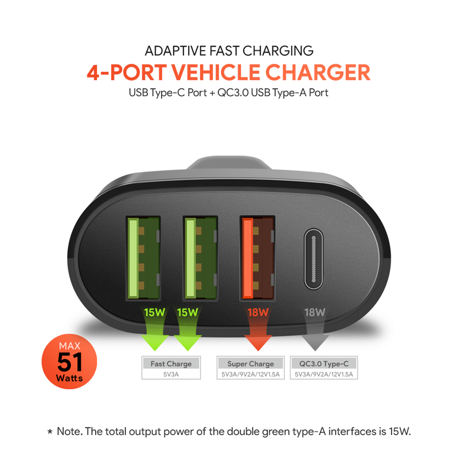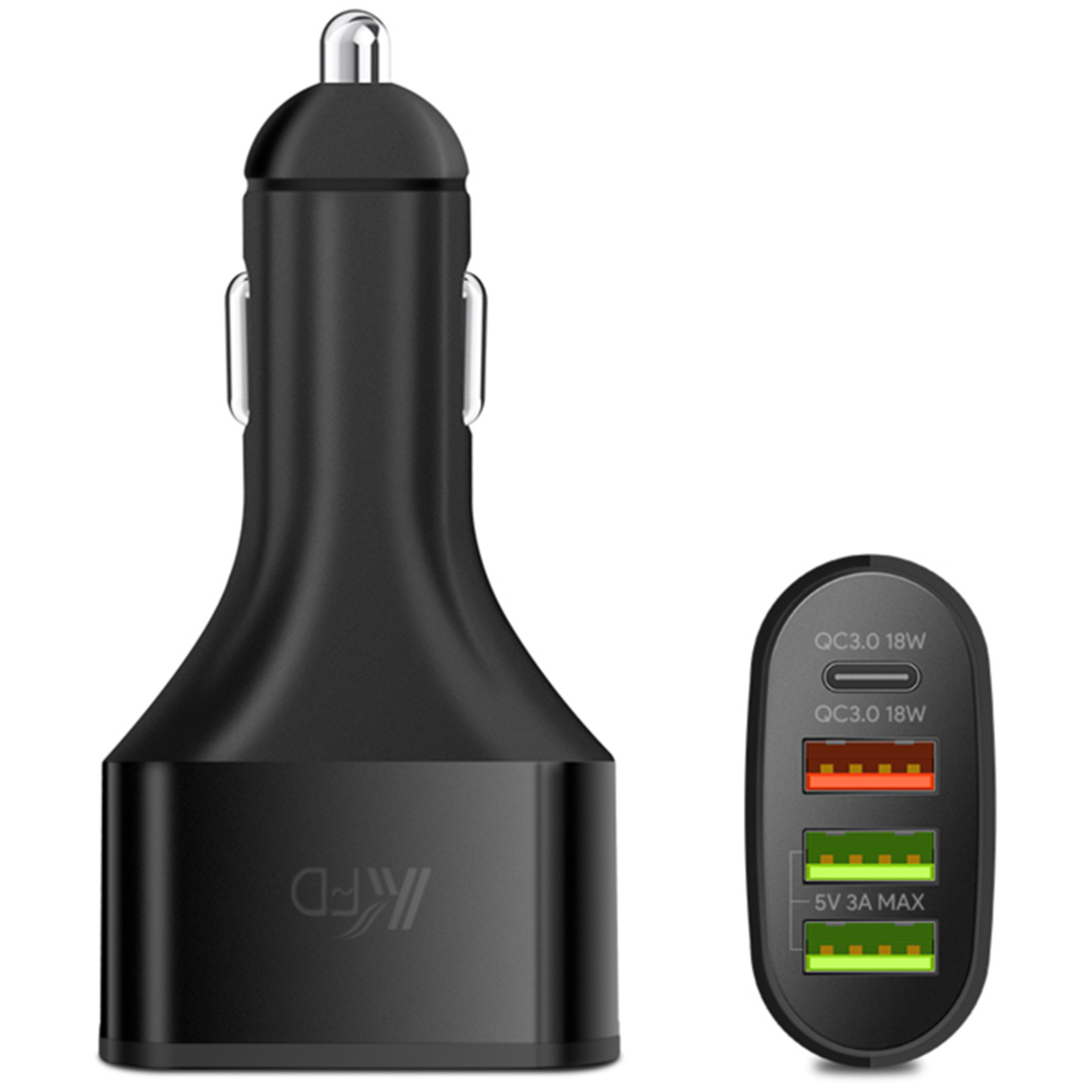 KFD Universal 4-Ports Car Charger Input 12-24V Total 51W - 18W QC3.0 USB-C - 18W QC3.0 USB - USB x2 5V 3A