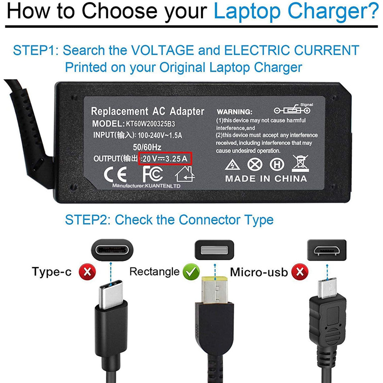 OEM Manufacture for Lenovo 65W 20V 3.25A Laptop Charger - Slim Tip USB Connector (Power cord not included)