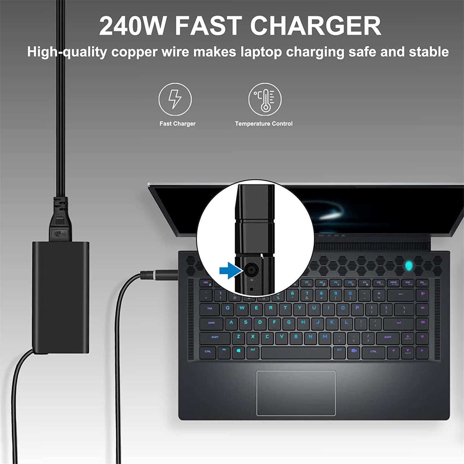 Dell Original Laptop GaN Charger 240W 19.5V 12.31A - 7.4x5.0mm Connector Size for Alienware X16 X17 R1/R2 M15 M17 R5/R6, PN: R4P0K 0R4P0K DA240PM200 (Power cord not included)