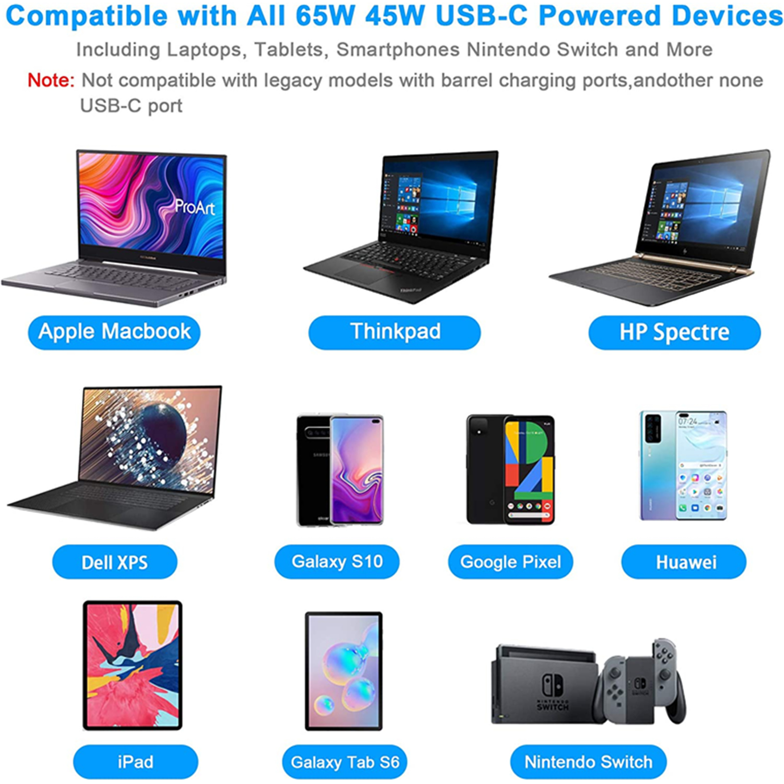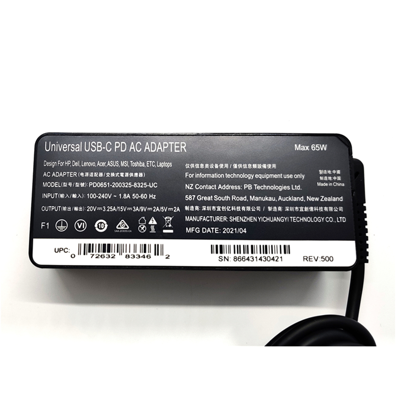 PB PD Power Charger - Universal 65W PD 20V 3.25A 15V 3A 9V 2A 5V 3A USB-C Connector, for HP/MacBook/iPad Pro, Air/Lenovo/Dell/Asus/Acer Laptops, Nintendo Switch and Other Laptops/Smart Phones with USB-C - Power cord not included