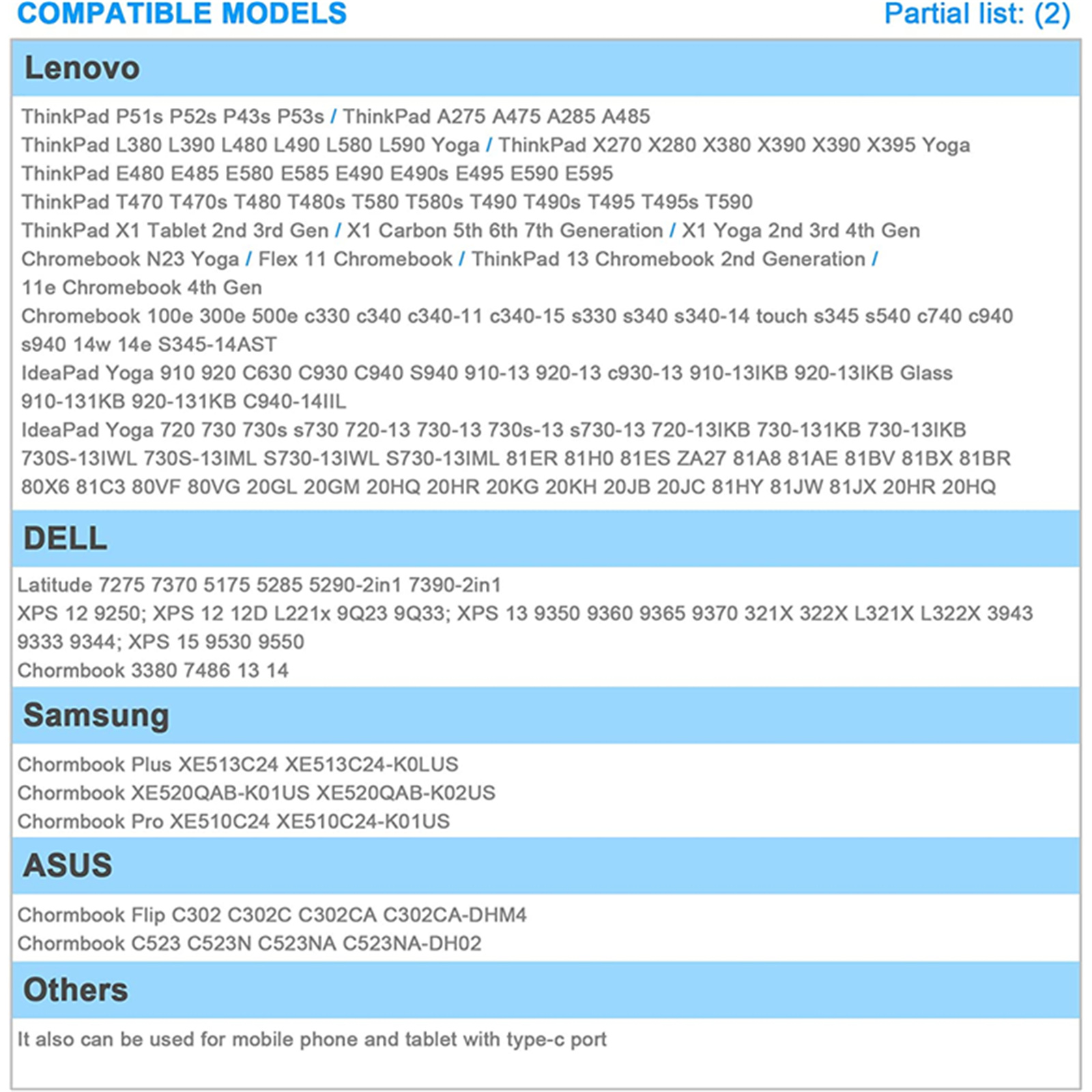 This charger has been tested to ensure compatibility with the following Lenovo 45W 65W USB-C laptops: