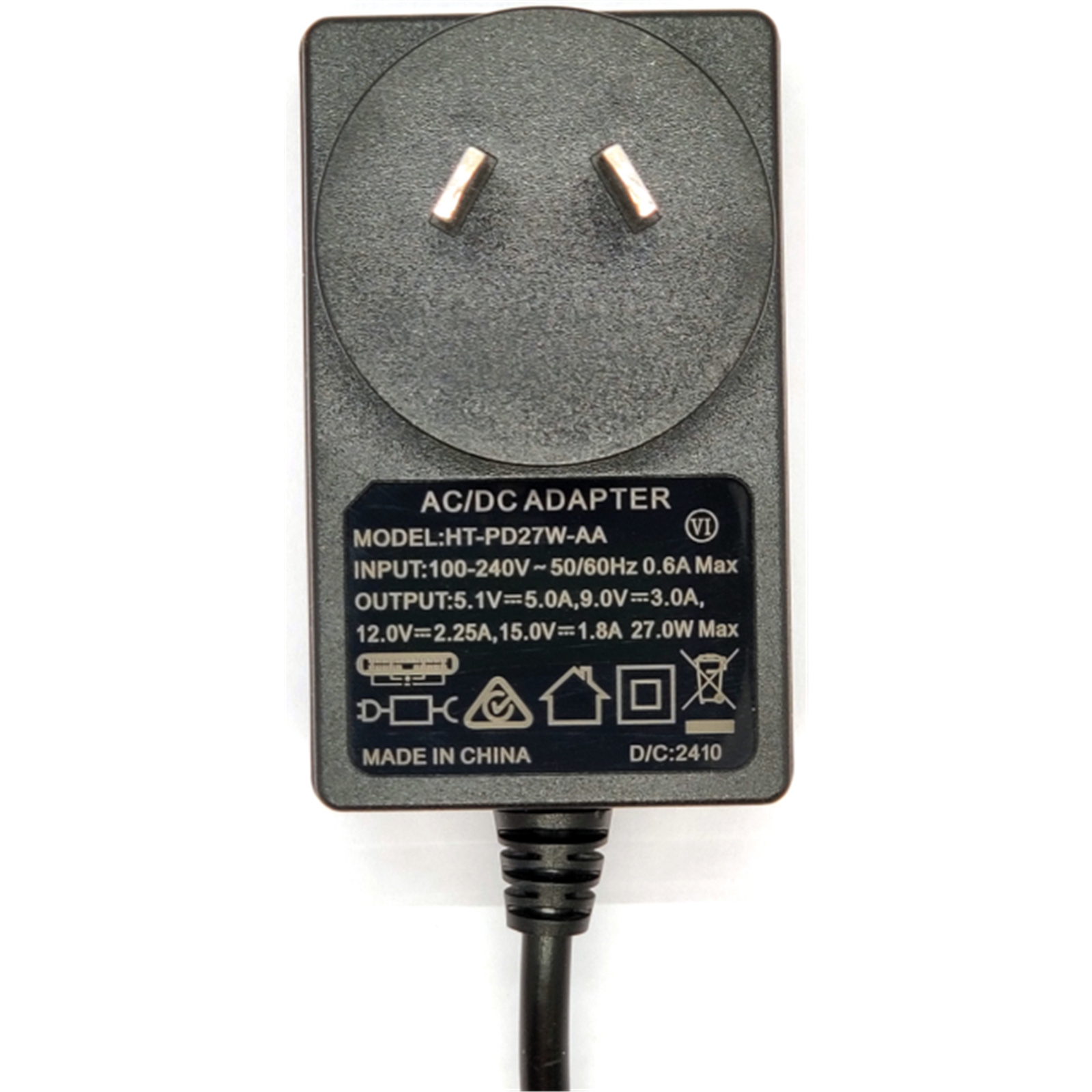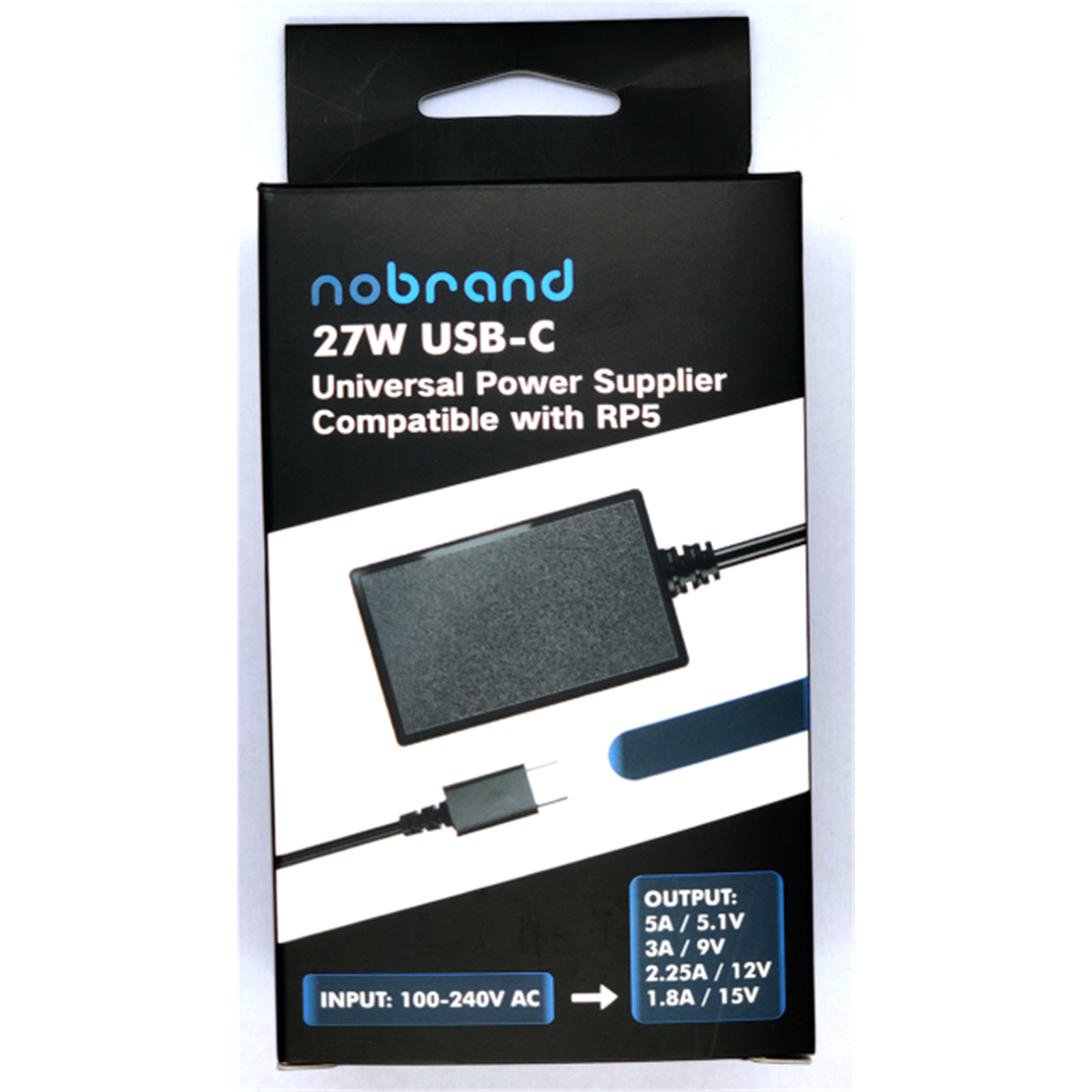 NoBrand USB-C 27w Universal Power Adapter / Wall Charger Output 27W PD-Compatible Compatible: Raspberry Pi 5 - Black - 1.2m Long, Delivery 5A/5.1V, 3A/9V, 2.25A/12V, 1.8A/15V 27W to PD-Compatible Products