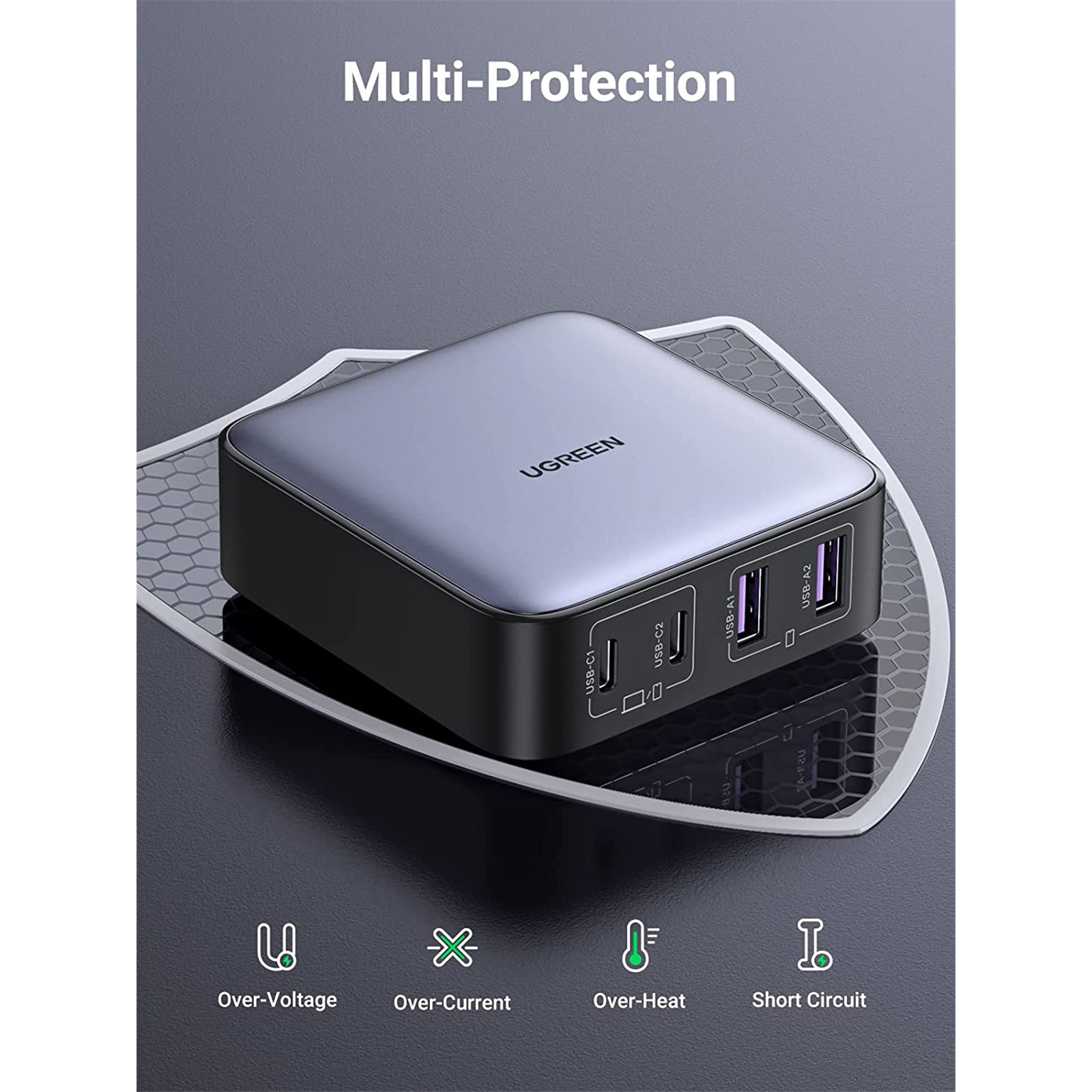 UGREEN Nexode 65W 4 Ports GaN Desktop Power Charger - 2x USB-A & 2x USB-C - Compatible with iPhone 14/14 Plus/14 Pro/14 Pro Max/13/12, Galaxy S22, iPad, MacBook Pro, Steam Deck and More
