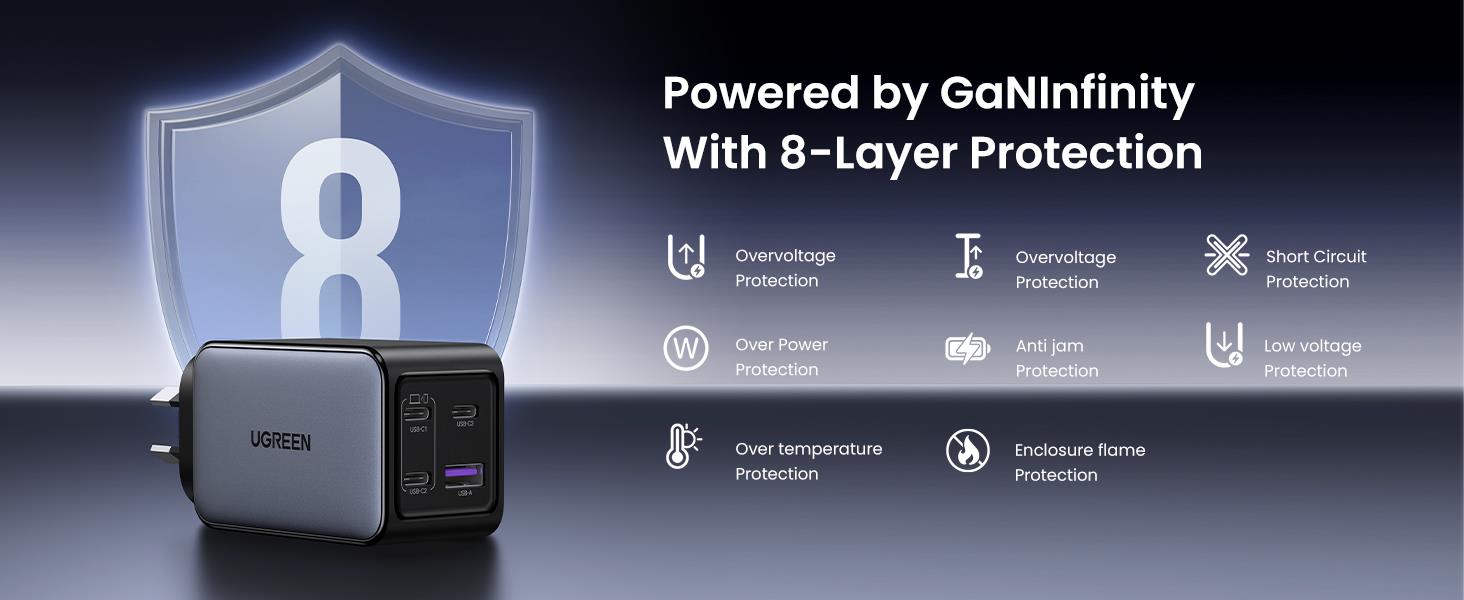 Every GaN charger's internal components will generate heat when working. Other GaN chargers generate heat and get hotter inside, it will be unsafe if the heat is not dissipated on time. So the heat must be dissipated through the shell. It is safe if the shell temperature is not above 77°C (170.6℉) when this UGREEN charger is working.