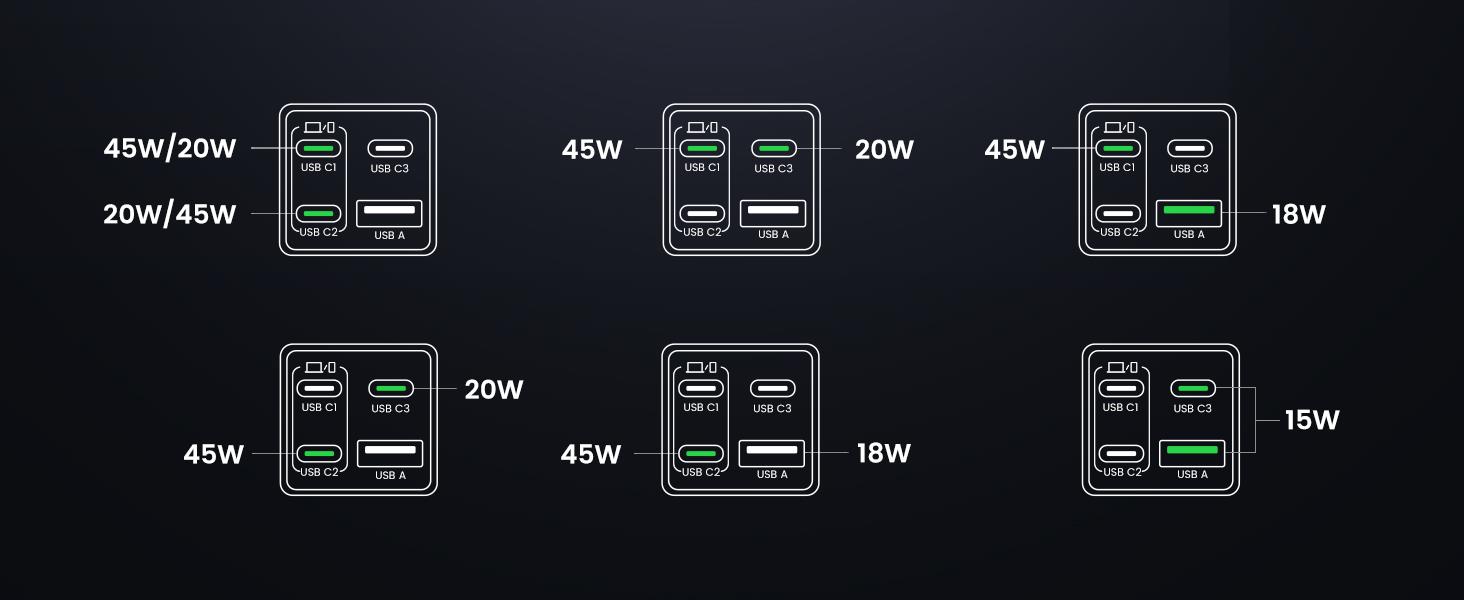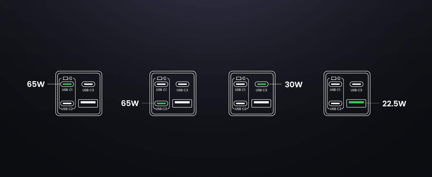 5V/3A, 9V/3A, 12V/3A, 15V/3A, 20V/3.25A, PPS: 3.3-11V/4.5A, 65WMax