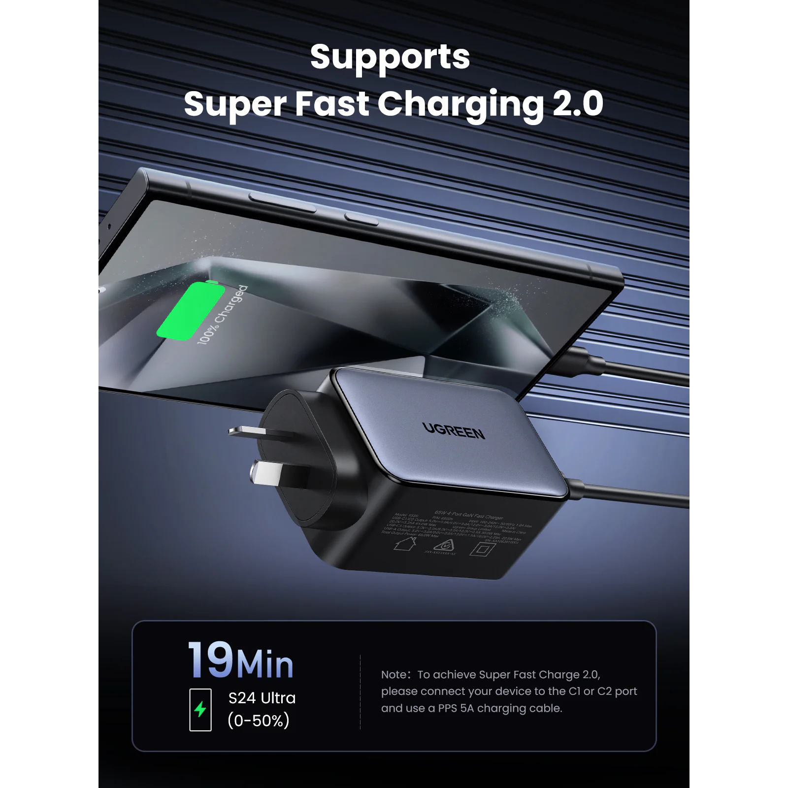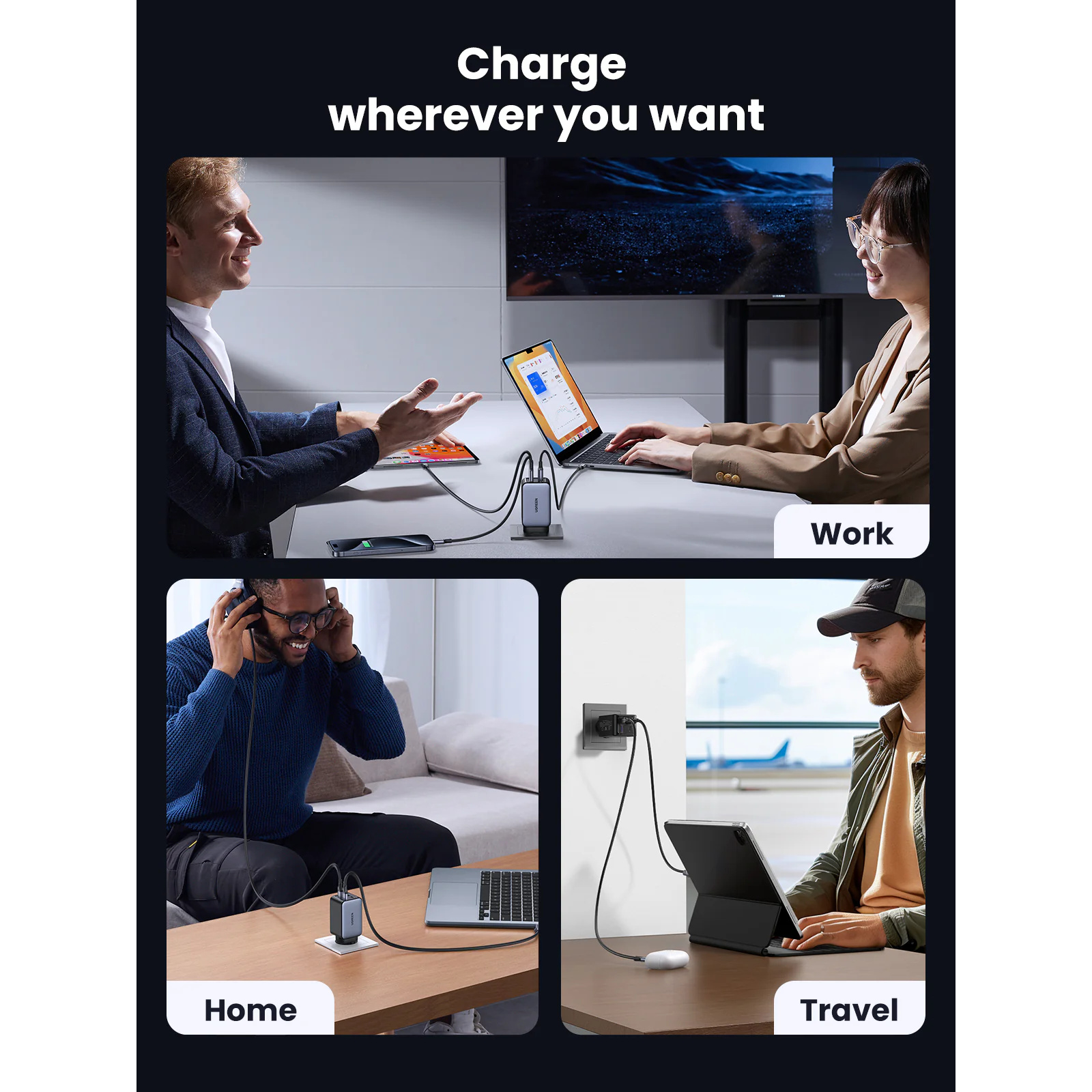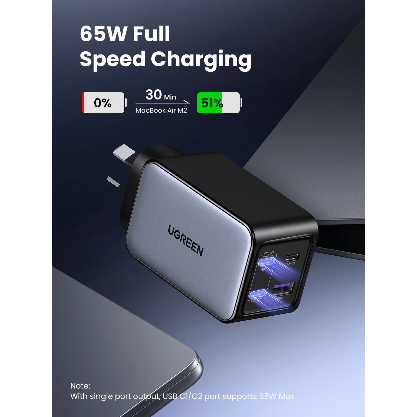UGREEN Nexode Pro 65W Quad Ports GaN Fast Wall Power Charger - 1x USB-A & 3x USB-C - For Laptops, Samsung Galaxy, iPhone & iPad