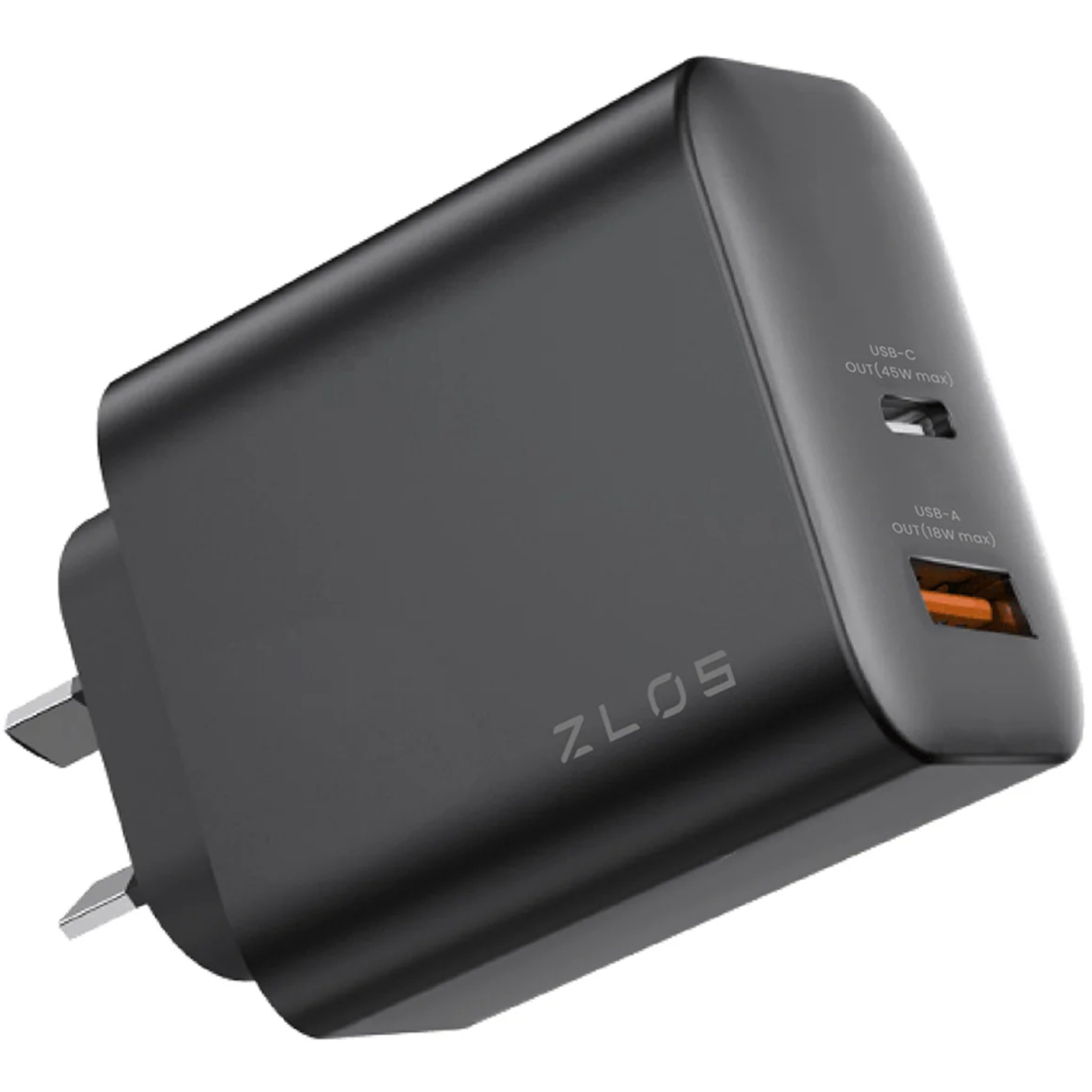 Zlos 45W Dual Port GAN Wall Charger - 1x USB-C 1x USB-A