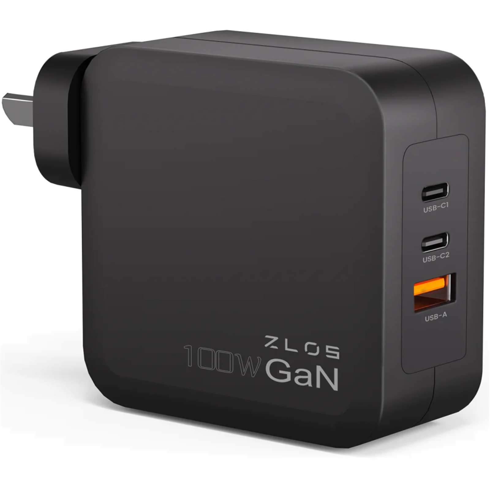 Zlos 100W 3 Port GAN Wall Charger - 2x USB-C & 1x USB-A - Fits for Laptop Macbook iPhone iPad Tablets Nintendo Switch