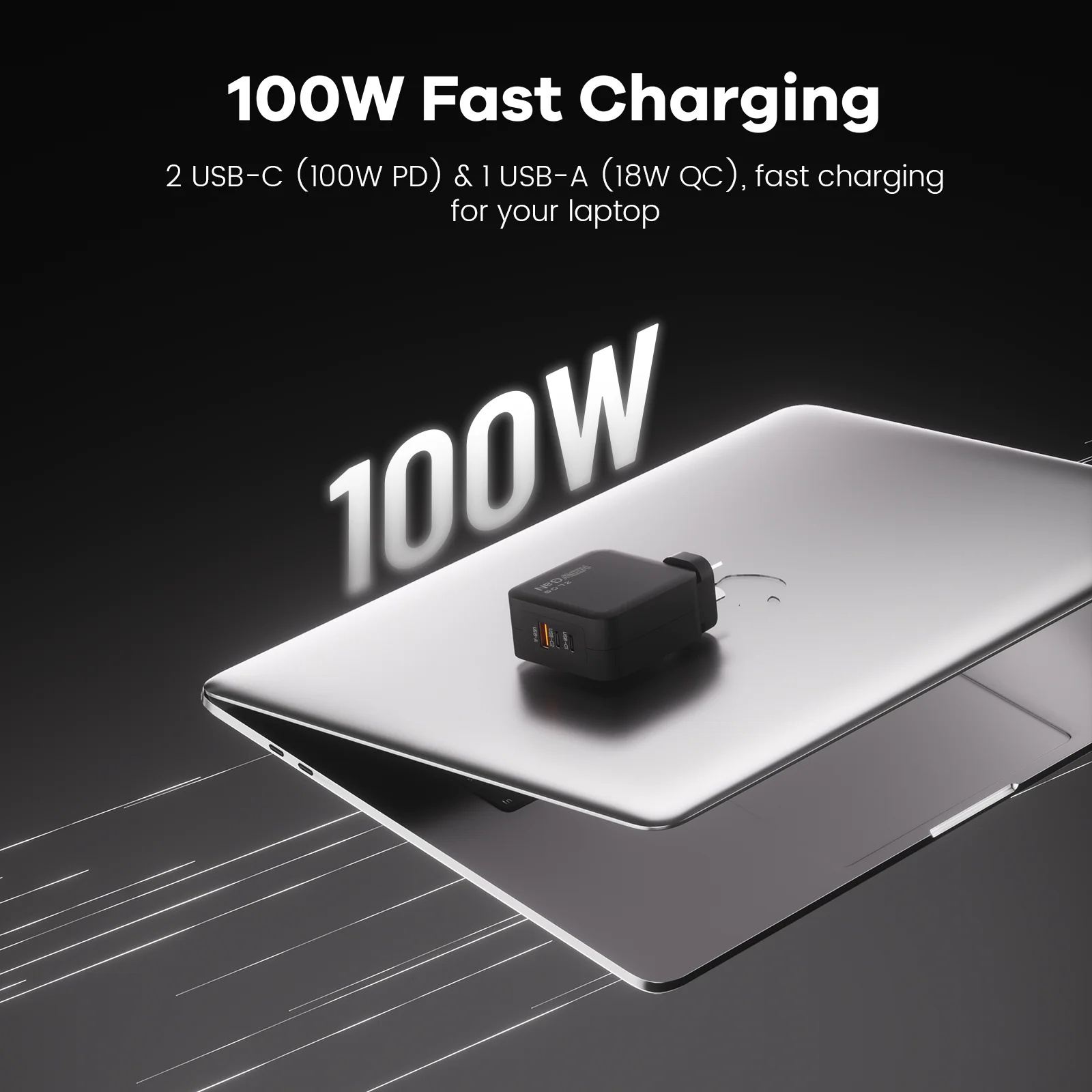 Unleash ultra - fast charging with 100W power! It features 2 USB - C ports (100W PD each) and 1 USB - A port (18W QC). Whether your laptop needs a quick charge or your phone is craving fast power, this charger delivers. Say goodbye to long charging times-get your devices charged in a flash and stay productive or entertained without delay.
