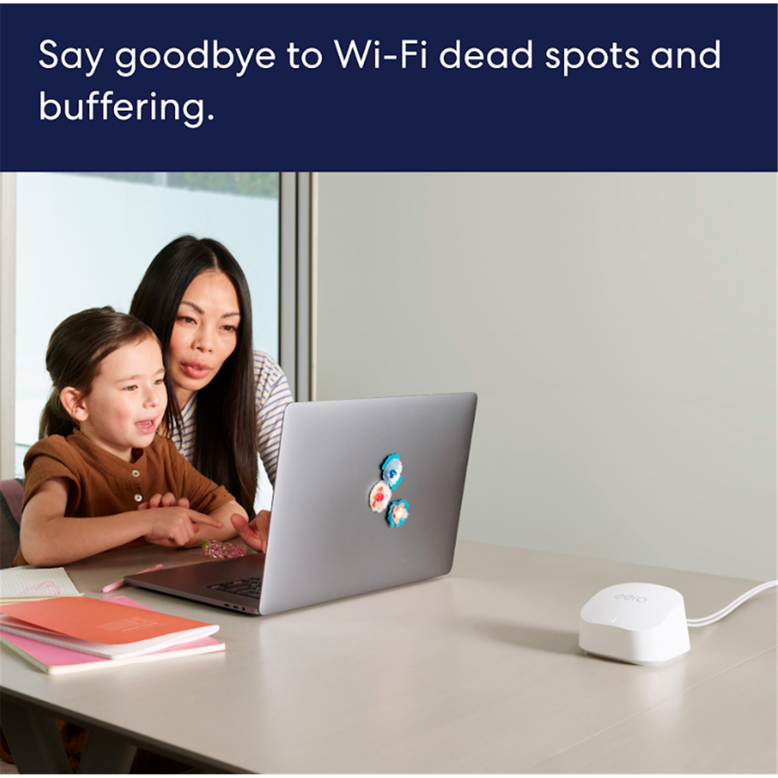eero's patented TrueMesh technology automatically finds the fastest path for your data. It constantly learns your environment to proactively reduce congestion, buffering, and drop-offs.