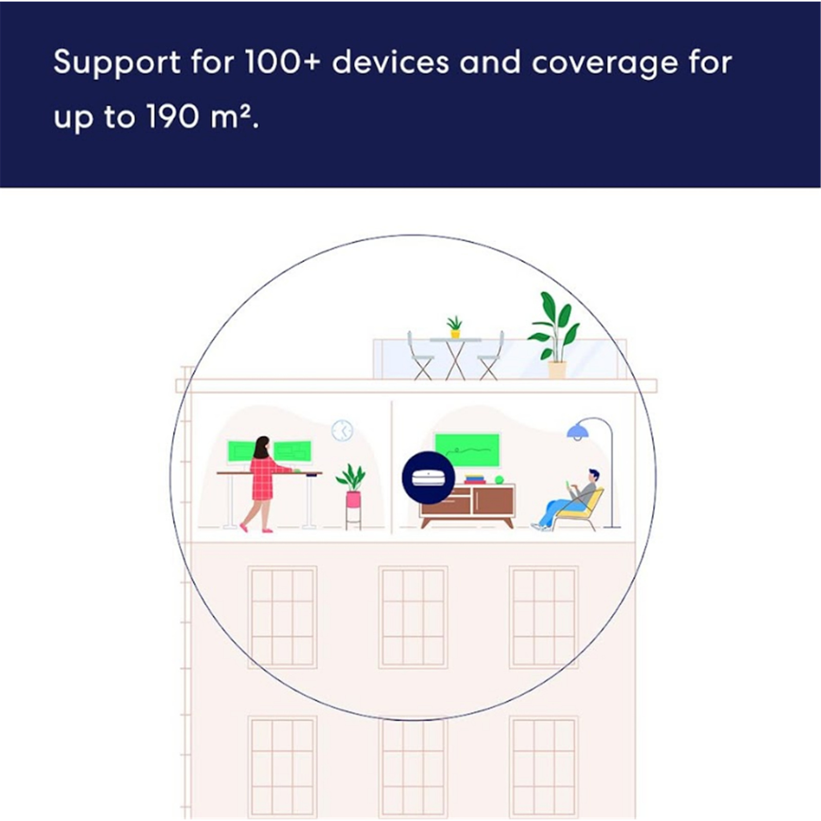 Covers up to 190 m² with strong, reliable signal using patented TrueMesh® technology.