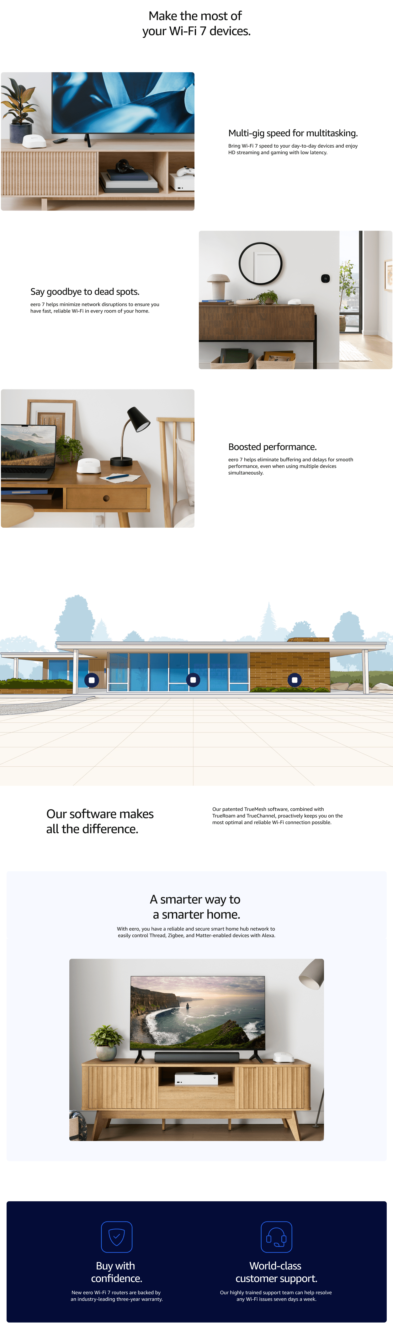 Works with Alexa not available in all countries. eero 7 and services, including eero subscription services, are subject to the disclaimers found at eero.com/disclaimers