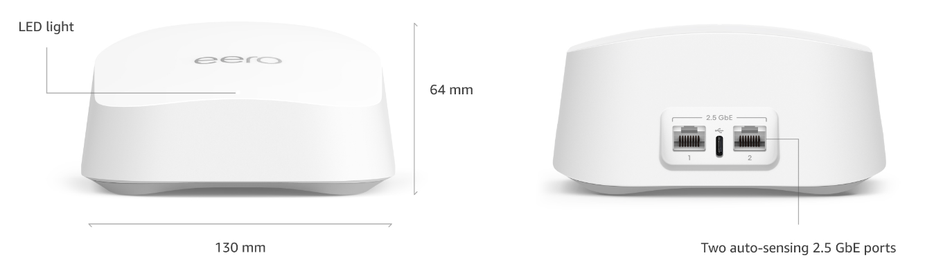 Some features require linking your Amazon account, and downloading the Alexa application or using a compatible Alexa device. Internet connection speeds and availability depend on the current internet speed you have with your ISP partner; if your ISP partner does not provide you with the maximum supported speed, you will not experience that maximum speed. Maximum network speeds, if applicable, reflect combined supported speeds across wired and wireless clients. Maximum wireless signal rates are derived from IEEE 802.11 standard. Specifications assume wired Ethernet connection; your experienced speed may vary when connected to an eero device that is configured as a wireless extender. Coverage estimates are based on normal use conditions. Actual range and performance can vary, and maximum supported speeds may not be available to all customers, due to factors such as local regulations (including power limits), network configuration, interference, connected devices, device usage, building materials, and obstructions. See https://eero.com/legal for more details regarding terms for eero products, software and services. For more information about eero performance, visit support.eero.com