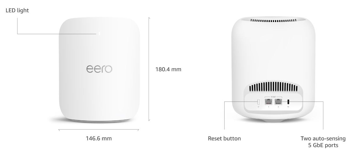 Some features require linking your Amazon account, and downloading the Alexa application or using a compatible Alexa device. Internet connection speeds and availability depend on the current internet speed you have with your ISP partner; if your ISP partner does not provide you with the maximum supported speed, you will not experience that maximum speed. Maximum network speeds, if applicable, reflect combined supported speeds across wired and wireless clients. Maximum wireless signal rates are derived from IEEE 802.11 standard. Specifications assume wired Ethernet connection; your experienced speed may vary when connected to an eero device that is configured as a wireless extender. Coverage estimates are based on normal use conditions. Actual range and performance can vary, and maximum supported speeds may not be available to all customers, due to factors such as local regulations (including power limits), network configuration, interference, connected devices, device usage, building materials, and obstructions. See https://eero.com/legal for more details regarding terms for eero products, software and services. For more information about eero performance, visit support.eero.com