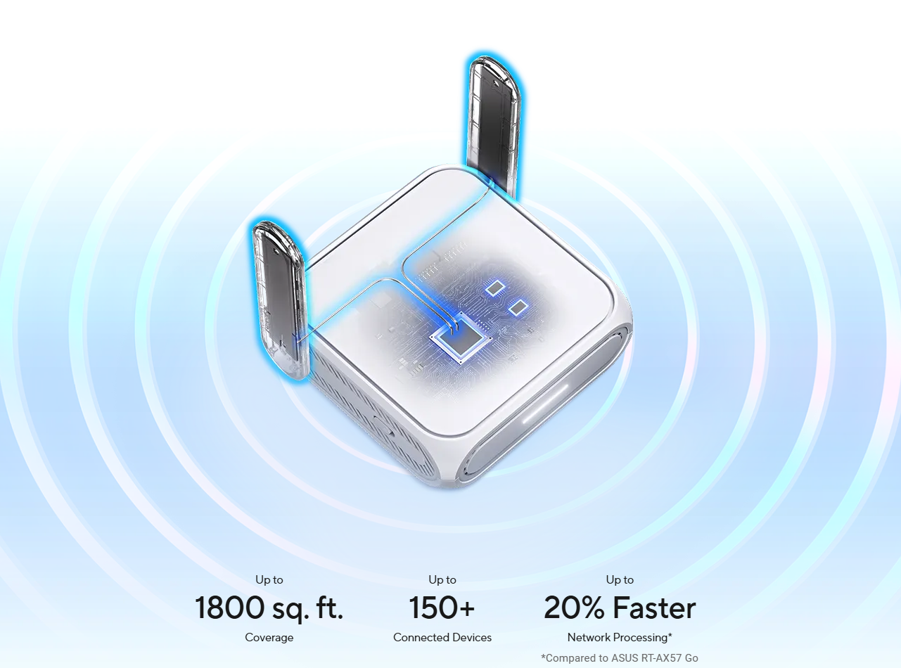 RT-BE58 Go harnesses the power of WiFi 7 and next-gen AiMesh technology to deliver wider coverage, a more stable and secure network and a feature-rich network experience - all under one network name for your entire smart home.