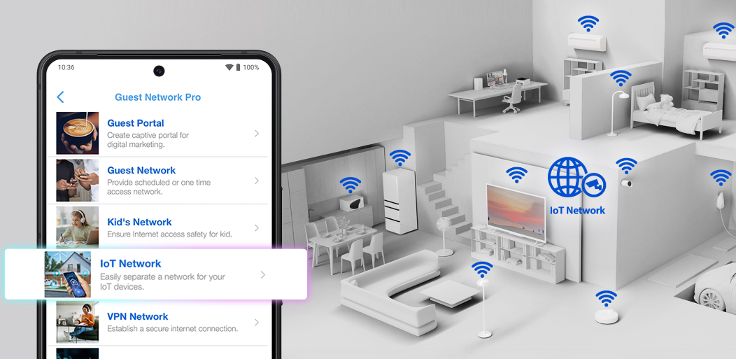- Easy IoT device, VPN subnetwork or guest portal setup with Guest Network Pro.