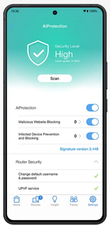 A one-tap router security assessment identifies vulnerabilities in your security settings, helping to prevent malicious activities or connection attempts made by infected devices.