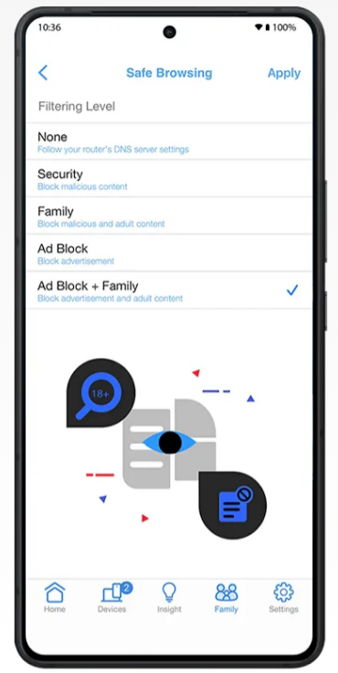 Customize protection for individual users or a group of devices with safety filters to secure your online activities. AdGuard DNS offers ad-blocking and privacy protection features to help block ads*.