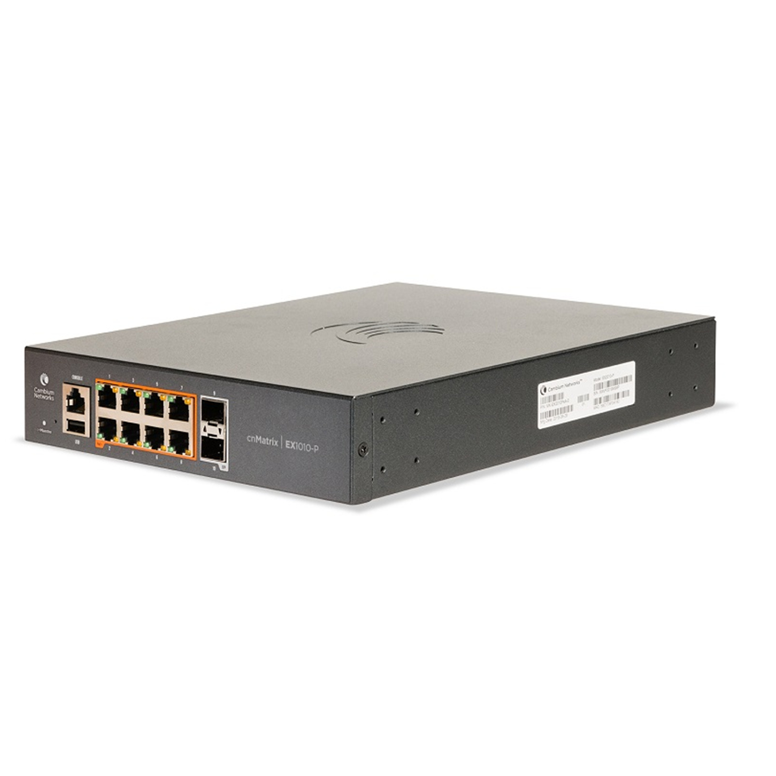 The Cambium cnMatrix EX1010-P (MX-EX1010PxA-0) is an Intelligent Ethernet PoE+ Switch with 8x 1Gbps and 2x 1Gbps SFP fiber ports. Cambium Networks' next generation switching platform offers a cloud managed, high performance, feature rich enterprise grade ethernet switching solution.