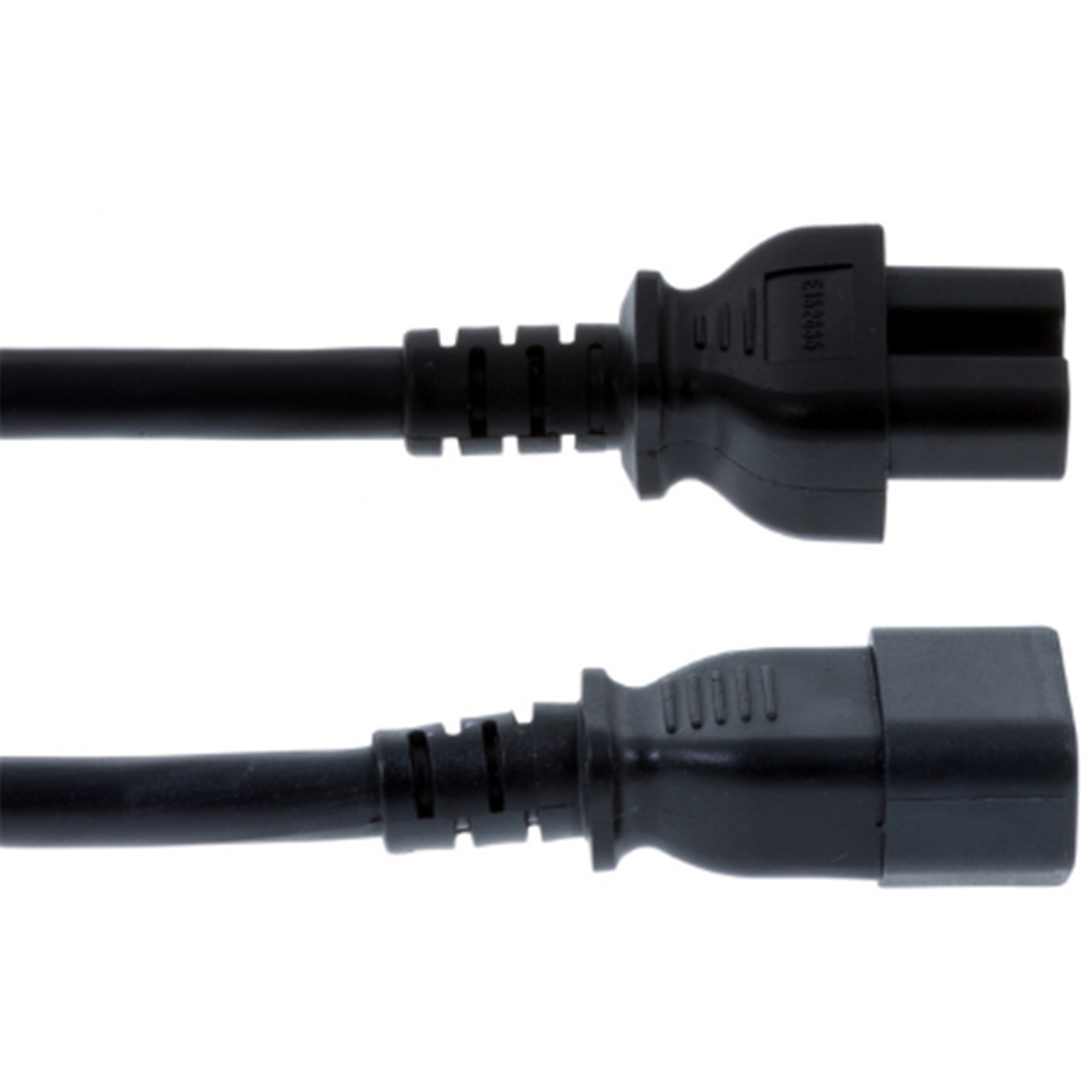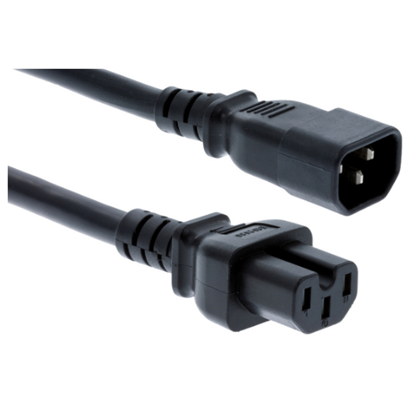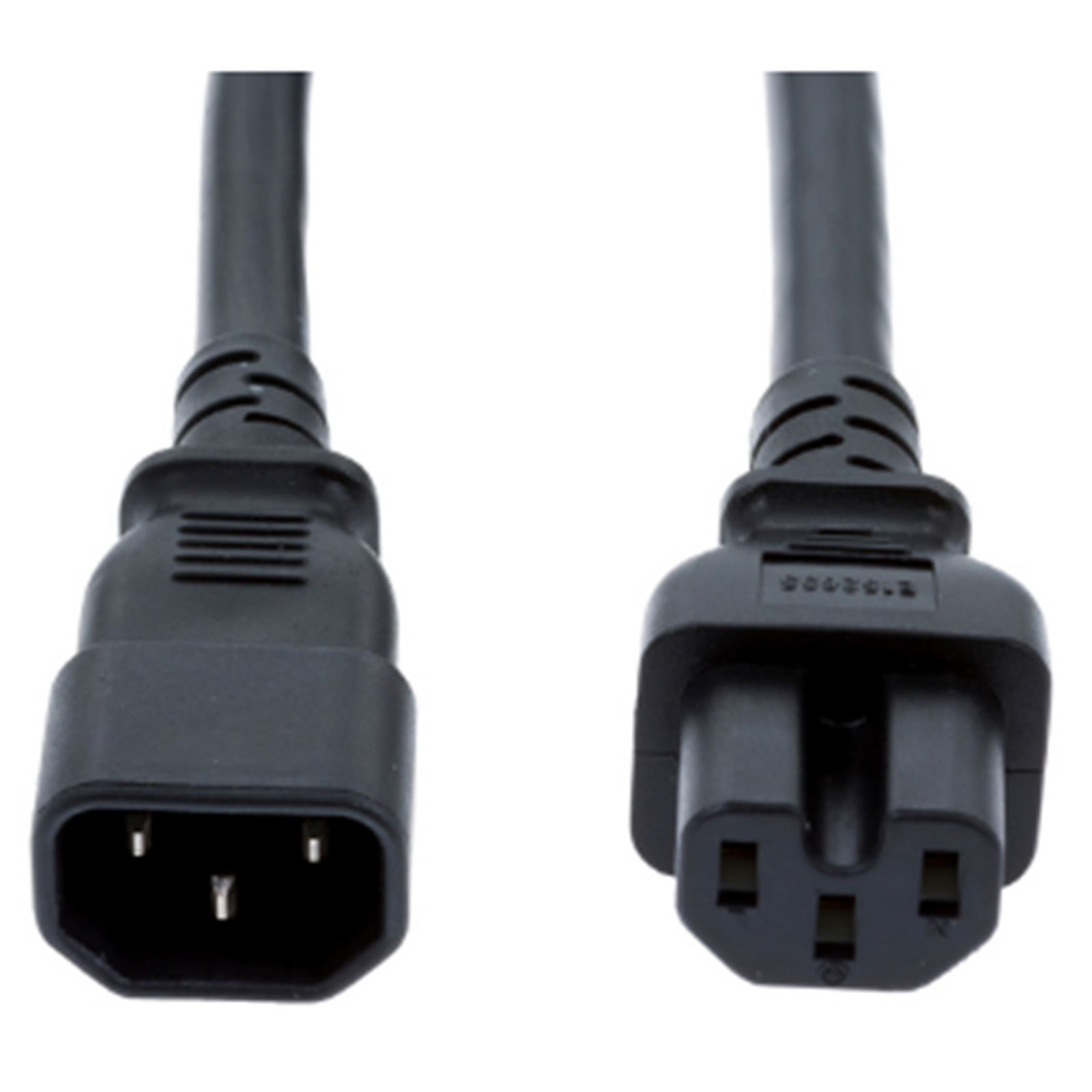 C15, or IEC60320-C15 is a 3 prong, female connector commonly used on the end of computer and networking device power cords. This equipment end looks like the C13 with a notch missing. The C15 can be used in place of the C13 if needed, which makes it more versatile. This plug has a maximum current rating of 10 amps at 16-18AWG, 15 amps with 14-16AWG and able to handle a maximum of 250 volts. This end can plug into a C14 or C16.