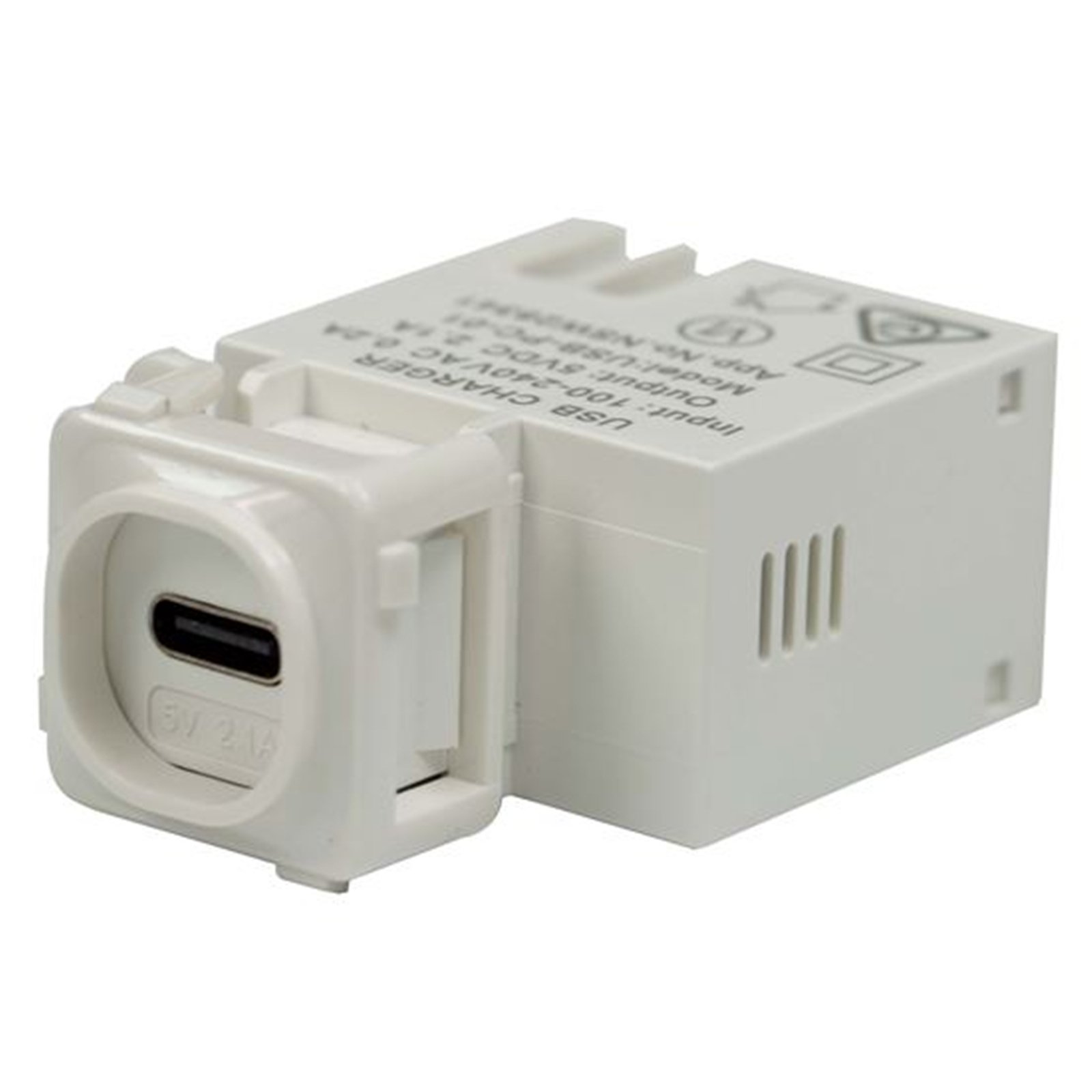 Dynamix AV-USB-PC-01 USB-C 2.1A Keystone Charging Mech. Input: 100-240V 50Hz. Output: 5VDC2.1A Includes Clipsal Adaptor
