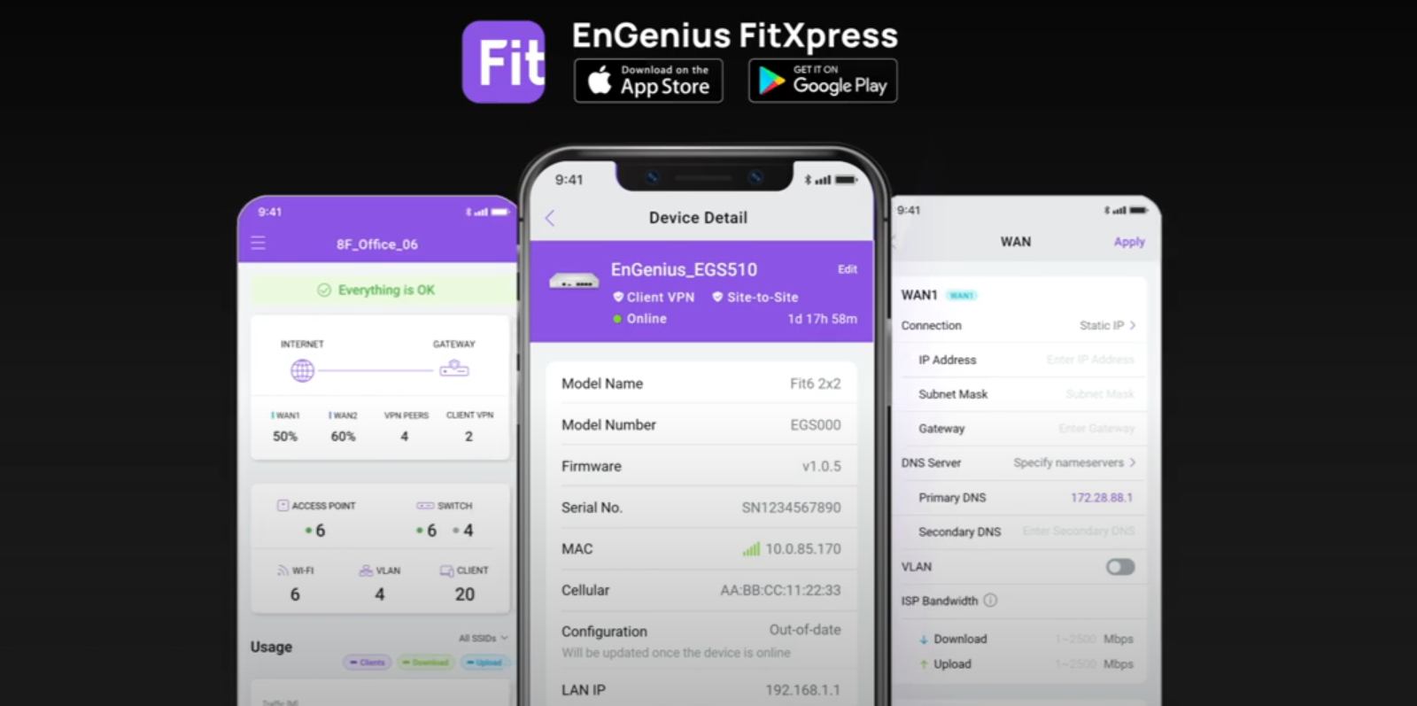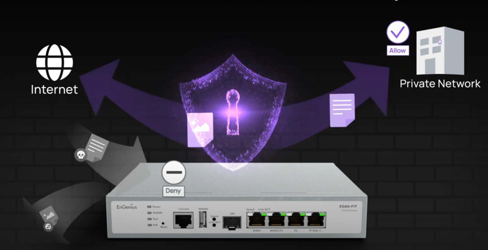 EnGenius FitXpress VPN Router XG60-FIT provides a high-performance network solution with advanced features, including load balancing, dual-WAN, and site-to-site VPN. The product offers unified management through FitXpress, allowing for easy configuration and management from anywhere. It offers a comprehensive end-to-end solutionfor businesses seeking to enhance their network performance and security.