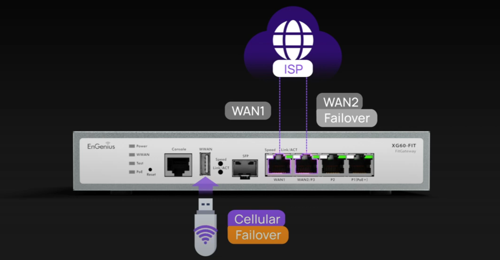- Built-in load balancing and safeguards with dual-WAN and cellular failover