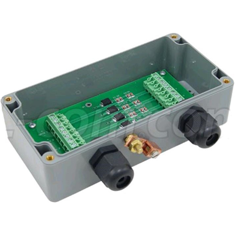 The AL-CAT6W Lightning Protector provides superior lightning and surge protection with improved frequency response for both indoor and outdoor 10/100/1000 Gigabit Ethernet networks. The unit meets or exceeds CAT6 performance for the four data pairs. The design uses high frequency transmission line layout techniques to maintain an optimum 100 ohms balanced impedance in the signal path. These techniques and the use of Ultra-Low Capacitance Protection Arrays provide superior high frequency response and improved return loss for the data pairs. In addition, the unit is compatible with 802.3af Power-over-Ethernet (PoE) devices. Integral to the design is protection for the two Ethernet data pairs and the PoE DC power feed. This unit supports normal and reverse polarity PoE. This CAT6 Lightning Protector is compatible with Wireless Access Points, Access Servers and Outdoor Routers, with or without Power-over-Ethernet (PoE) functionality. When using Motorola®/Orthogon equipment, the AL-CAT6W is an ideal alternative to Transtector® protectors. This unit features a weatherproof ABS enclosure with gasketed cover and concealed mounting holes. Removable Terminal Strips are provided on the input and output for convenience. To ease installation, the terminal strips can be removed. A ground clamp provides a tie point for earth ground. For maximum protection from lightning on long cable runs, two units can be used, one at each end of the cable.